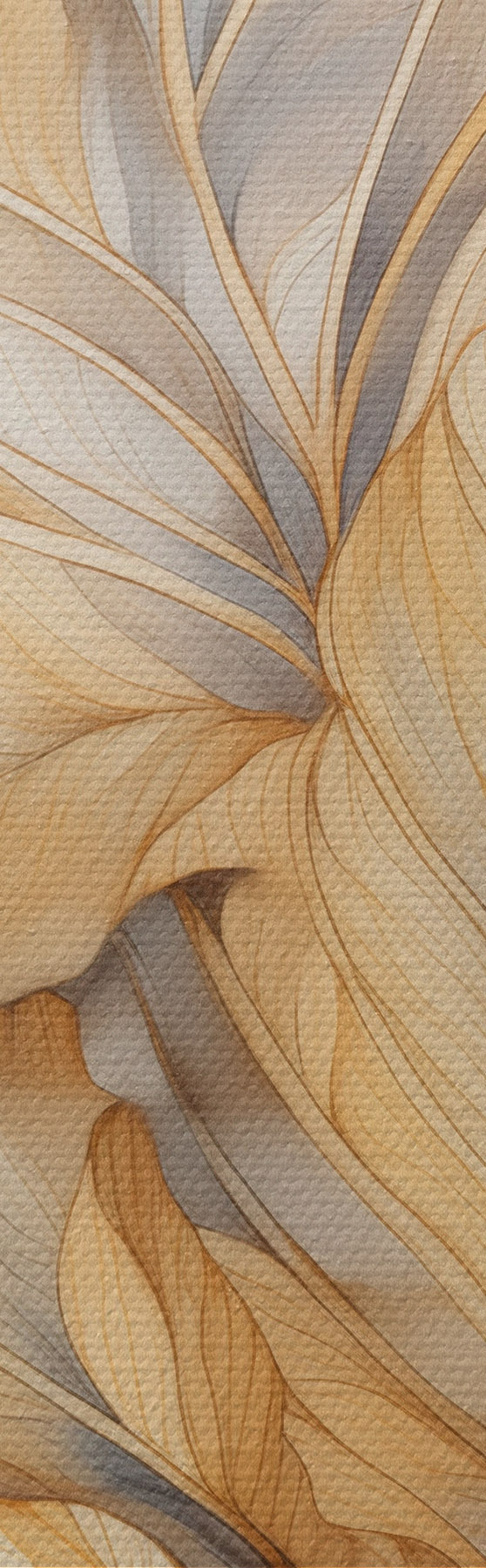 Obraz Abstrakcyjne, duże, żółte i brązowe liście o skomplikowanych szczegółach na tle górskiego krajobrazu. s47022