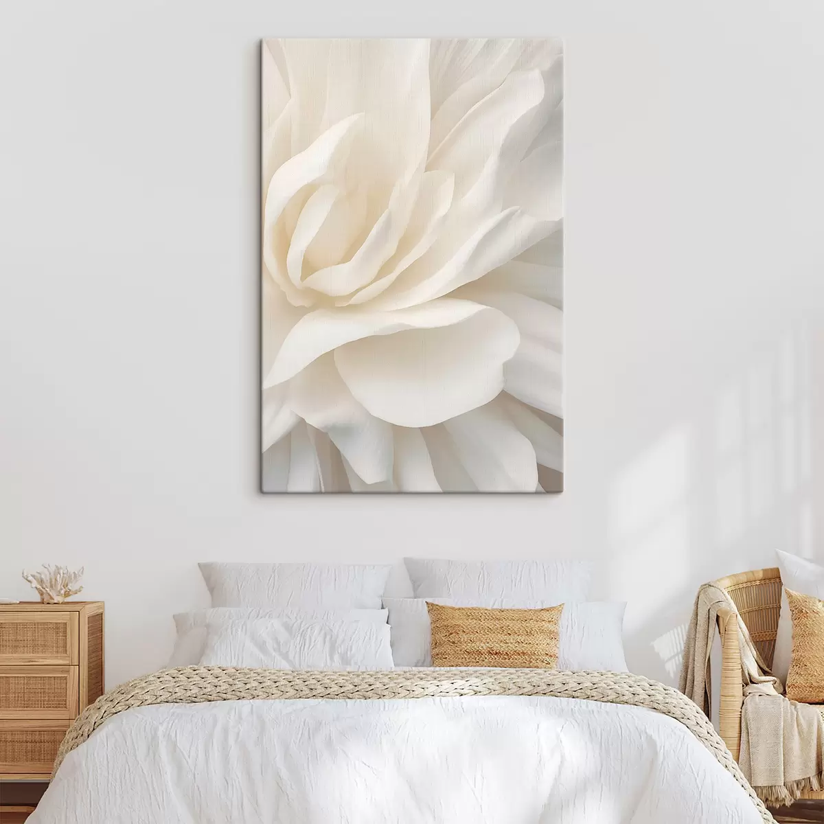Obraz Abstrakcyjny biały kwiat z delikatnymi, warstwowymi płatkami, minimalistyczna sztuka Nr s47024