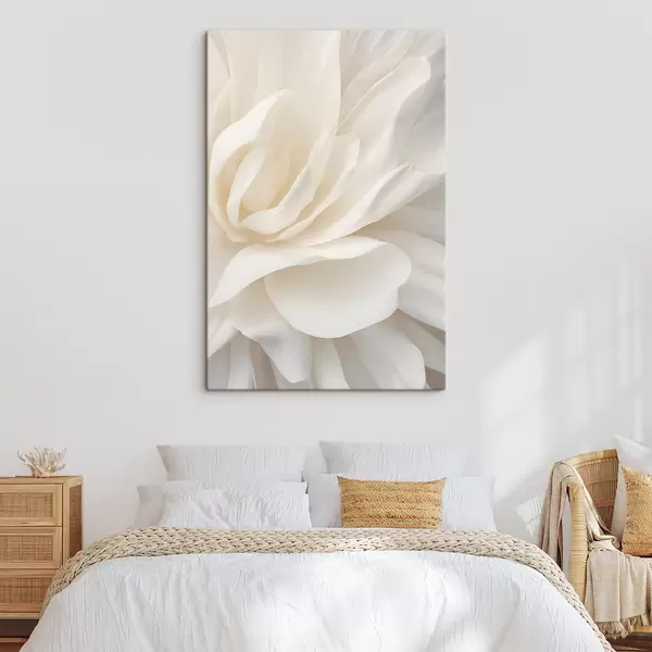 Obraz Abstrakcyjny biały kwiat z delikatnymi, warstwowymi płatkami, minimalistyczna sztuka s47024