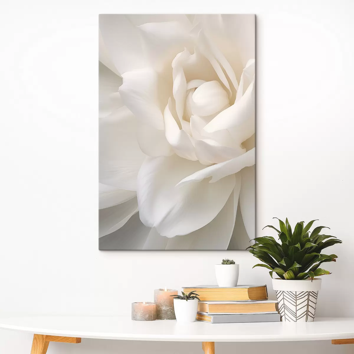 Obraz Abstrakcyjny biały kwiat z delikatnymi, warstwowymi płatkami, minimalistyczna sztuka s47025