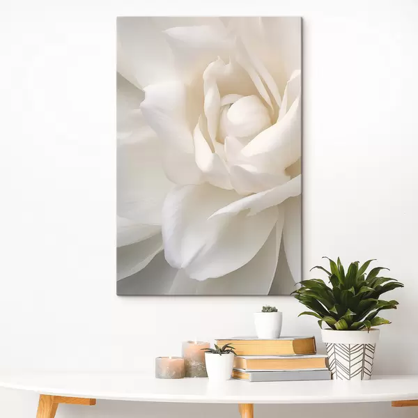 Obraz Abstrakcyjny biały kwiat z delikatnymi, warstwowymi płatkami, minimalistyczna sztuka Nr s47025
