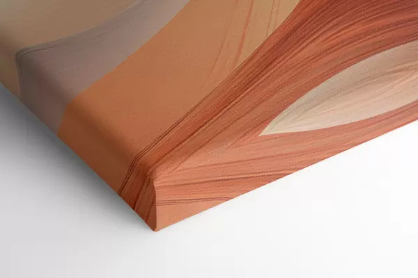 Obraz Abstrakcyjny krajobraz pustynny z płynącymi wydmami w ciepłych odcieniach pomarańczy i bieli Nr s47031