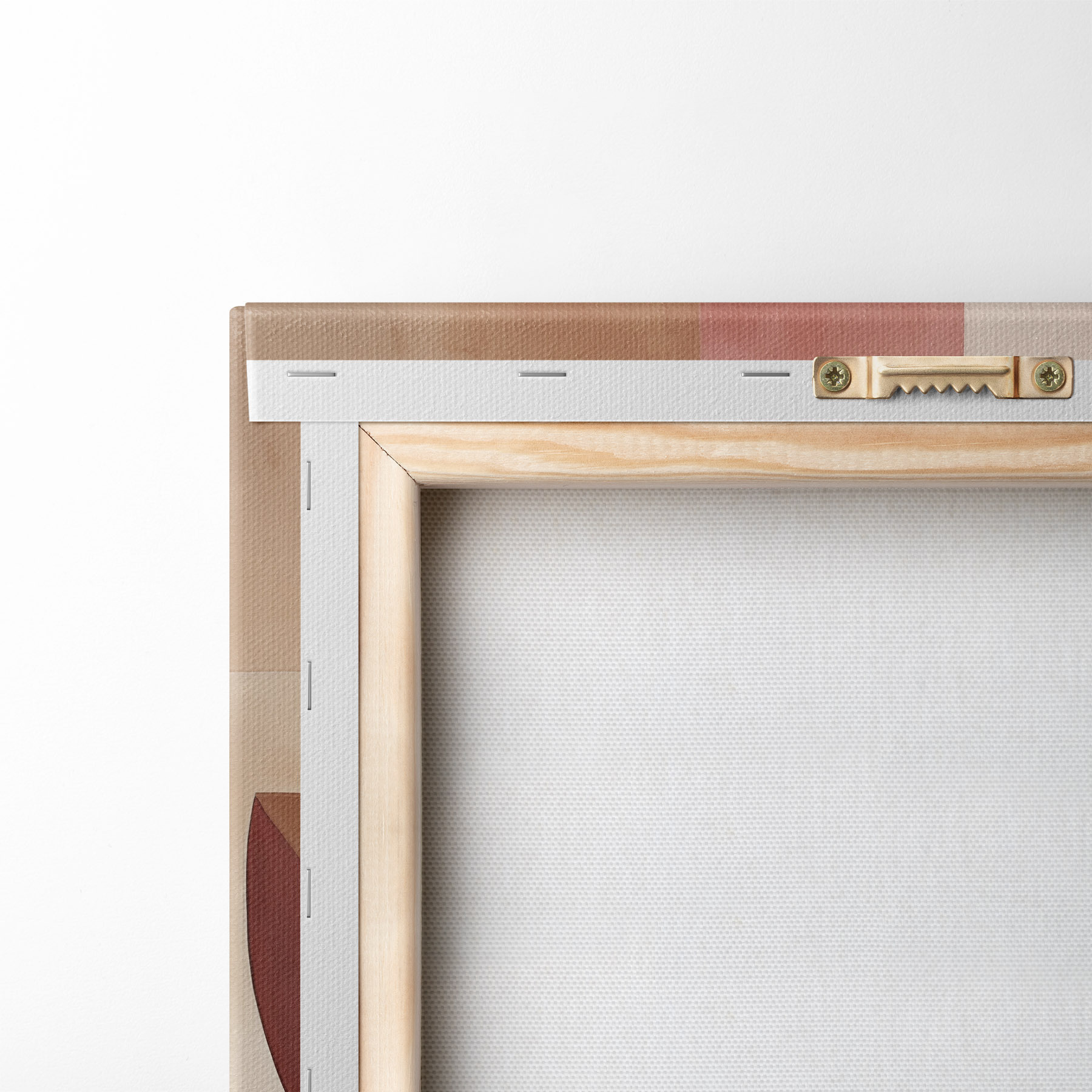 Obraz Abstrakcyjna roślina o czerwonych liściach na tle geometrycznych kształtów i delikatnych, stonowanych kolorów. Nr s47041