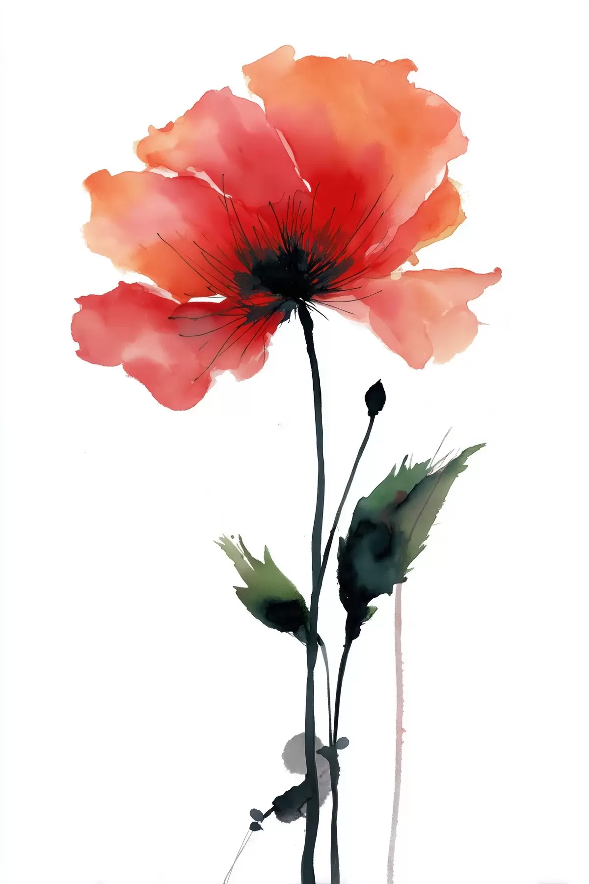 Obraz Akwarelowy mak w spokojnej palecie barw z delikatnymi przejściami kolorów Nr s47087