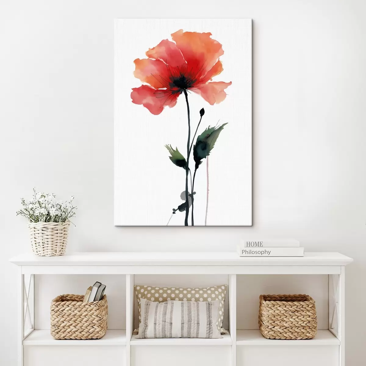 Obraz Akwarelowy mak w spokojnej palecie barw z delikatnymi przejściami kolorów s47087