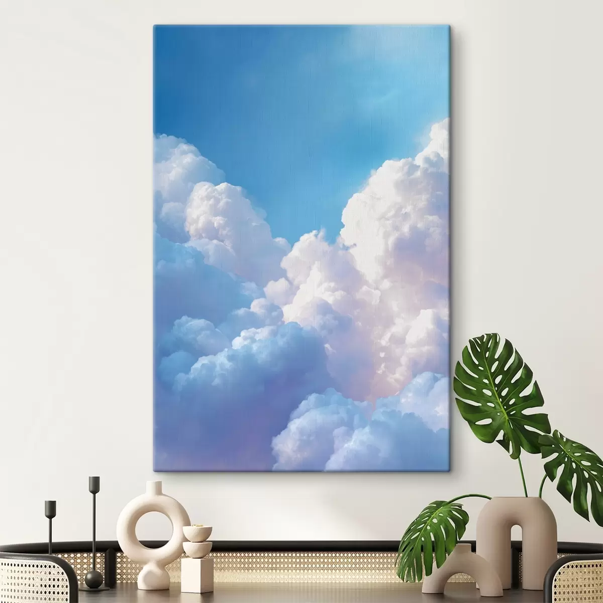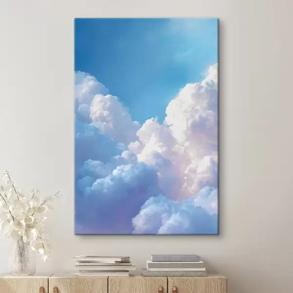 Obraz Malowniczy krajobraz nieba z ogromnymi białymi chmurami w stylu grafiki cyfrowej Nr s47089