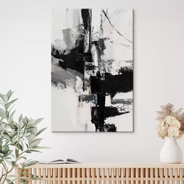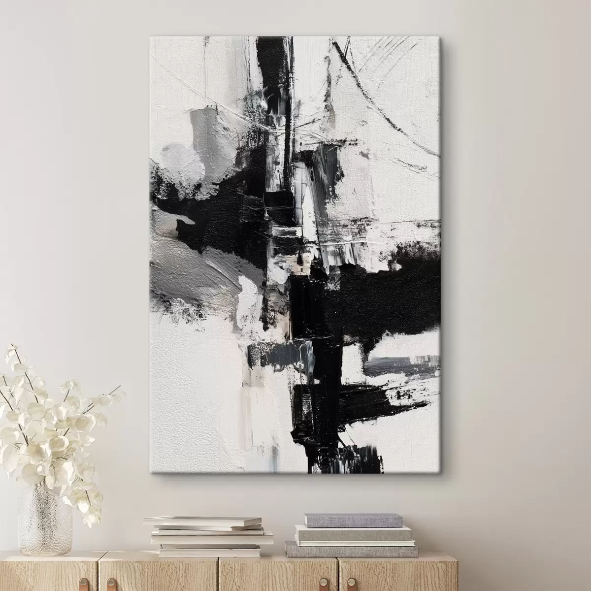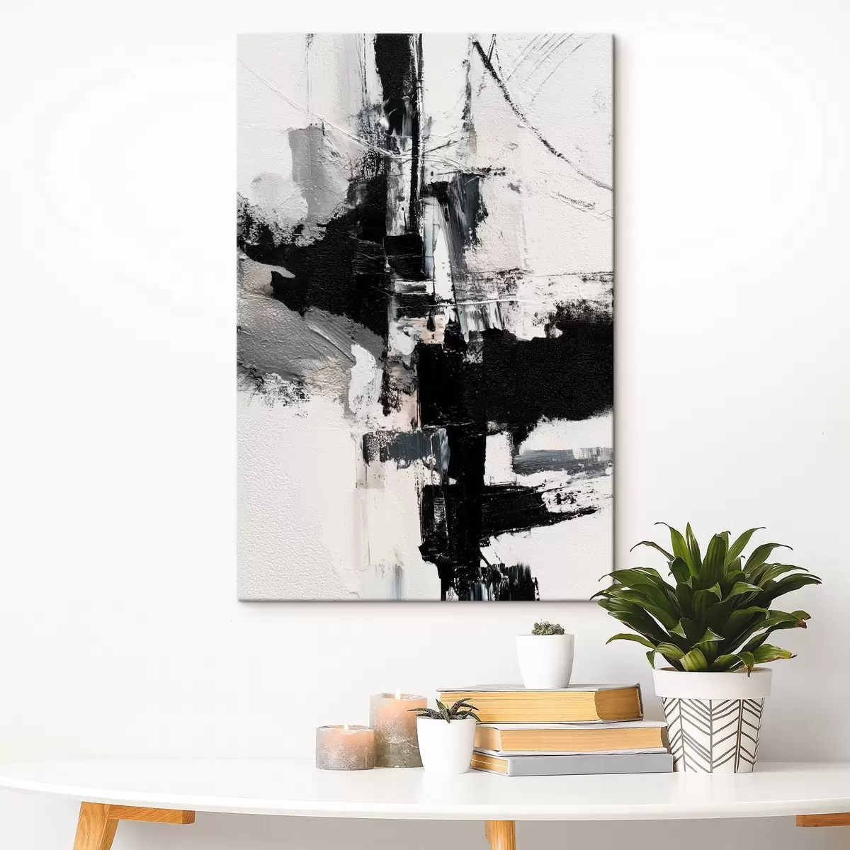 Obraz Teksturowana ilustracja z kontrastującymi czarnymi i szarymi pociągnięciami pędzla w stylu malarstwa olejnego. Nr s47091