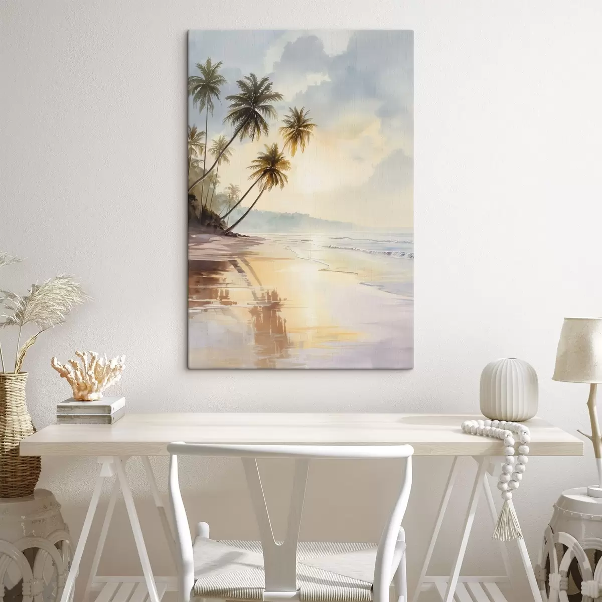 Obraz plaża o zachodzie słońca na wyspie w stylu akwareli Nr s47136