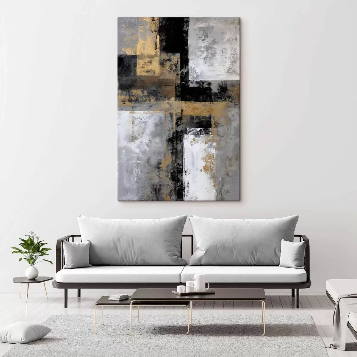Obraz współczesna abstrakcja teksturalna w odcieniach czerni, szarości i bieli Nr s47139
