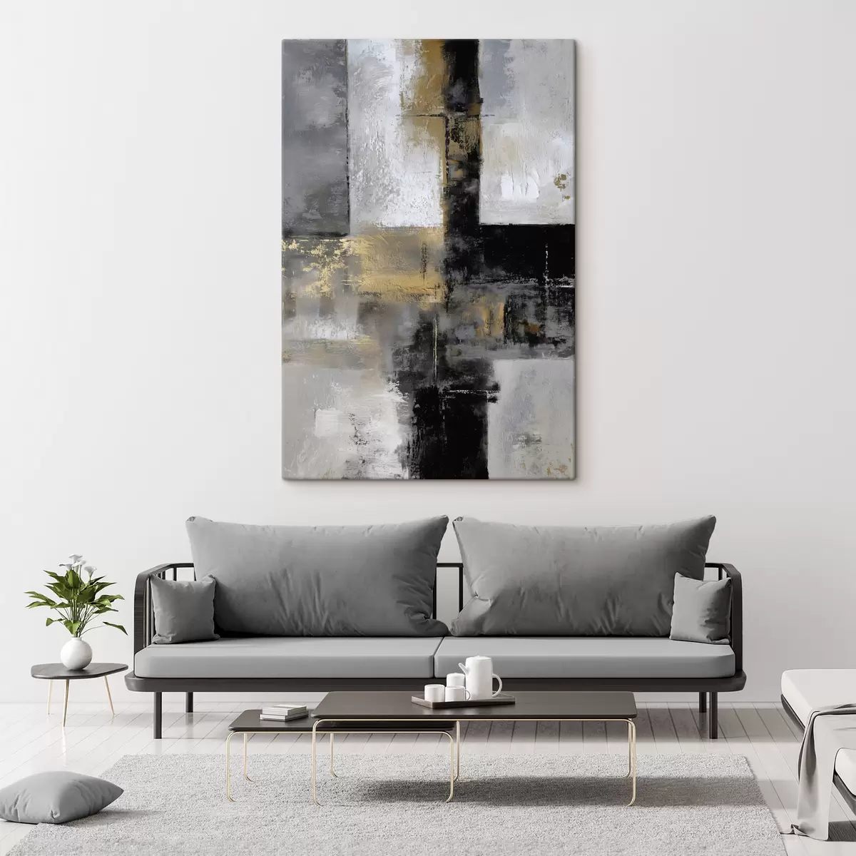 Obraz współczesna abstrakcja teksturalna w odcieniach czerni, szarości i bieli Nr s47140