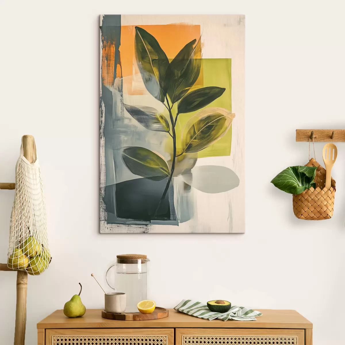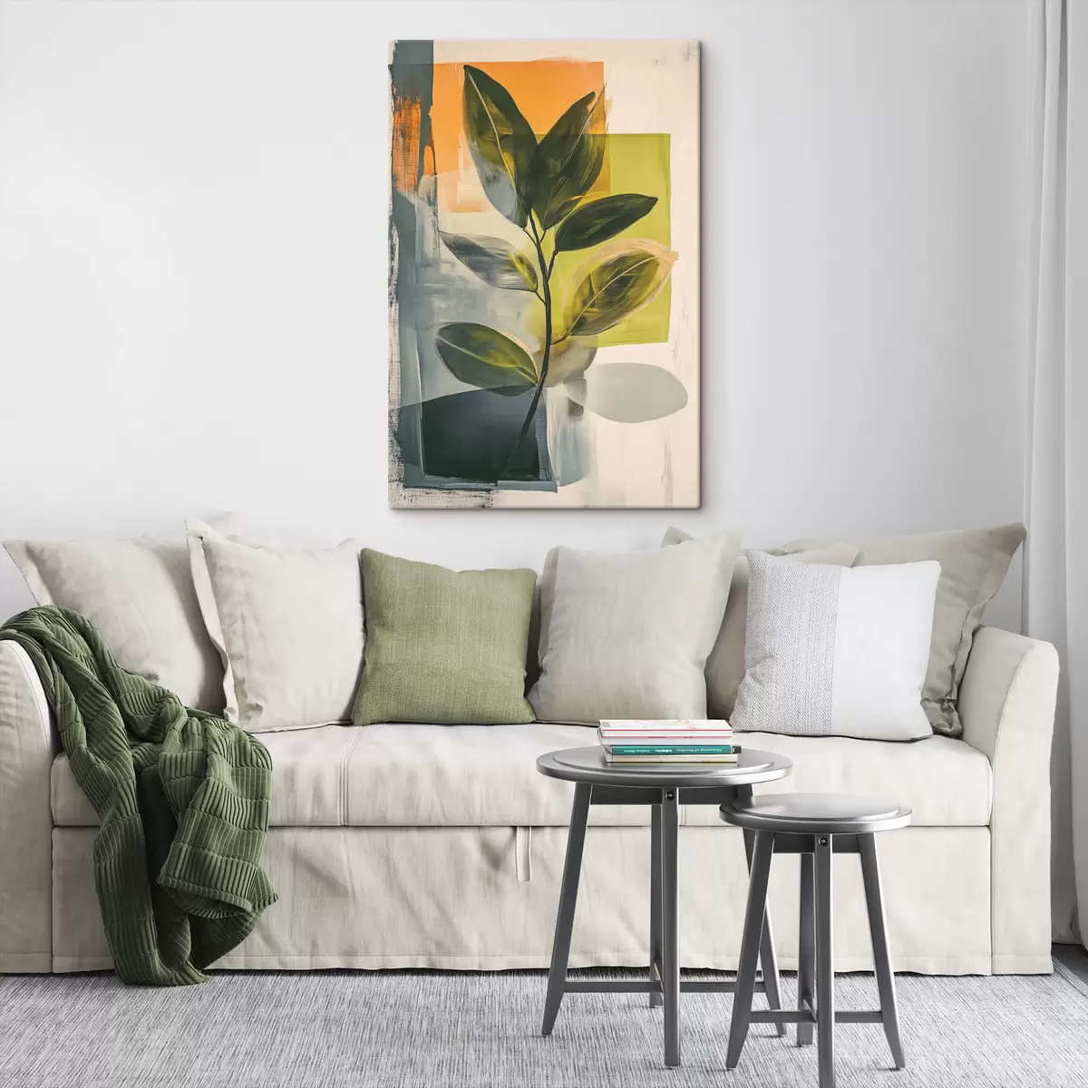Obraz Gałąź liści na abstrakcyjnym tle Nr s47249
