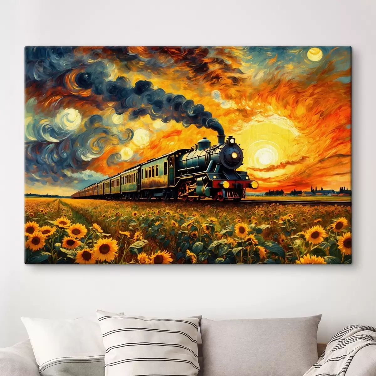 Obraz można powiesić natychmiast po jego otrzymaniu. Obraz zostanie naciągnięty na drewniany blejtram o szerokości 2 cm.