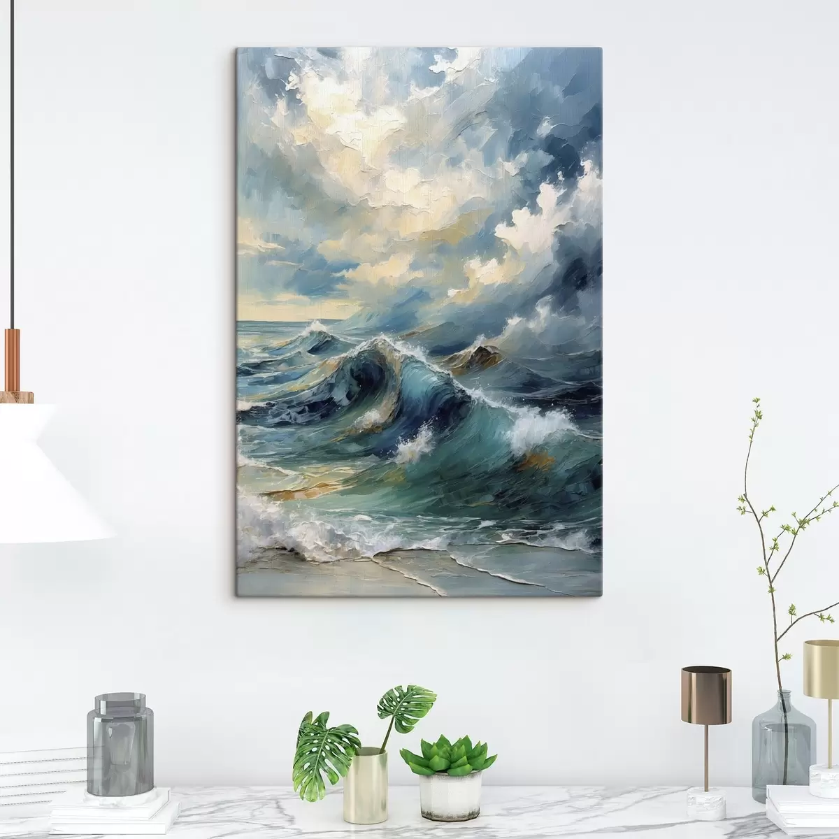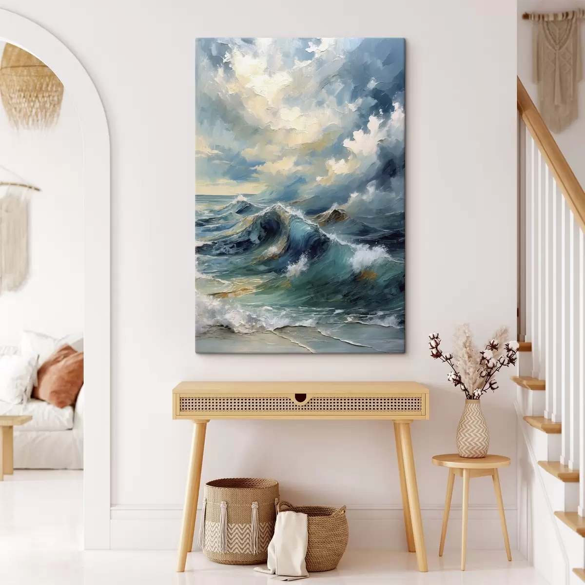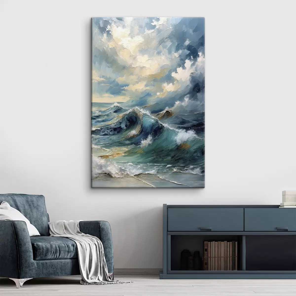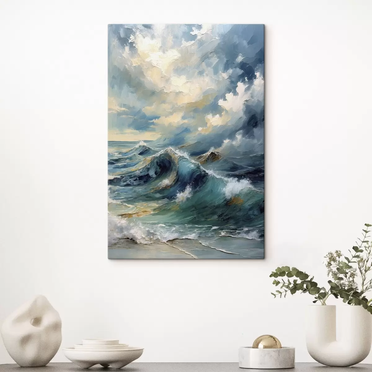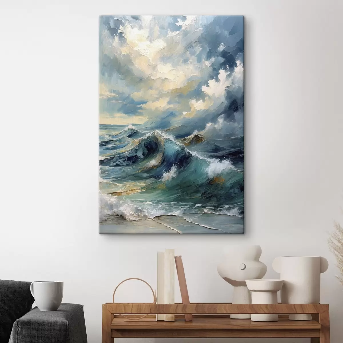 Obraz Fale morskie pod jasnym, zachmurzonym niebem Nr s47275