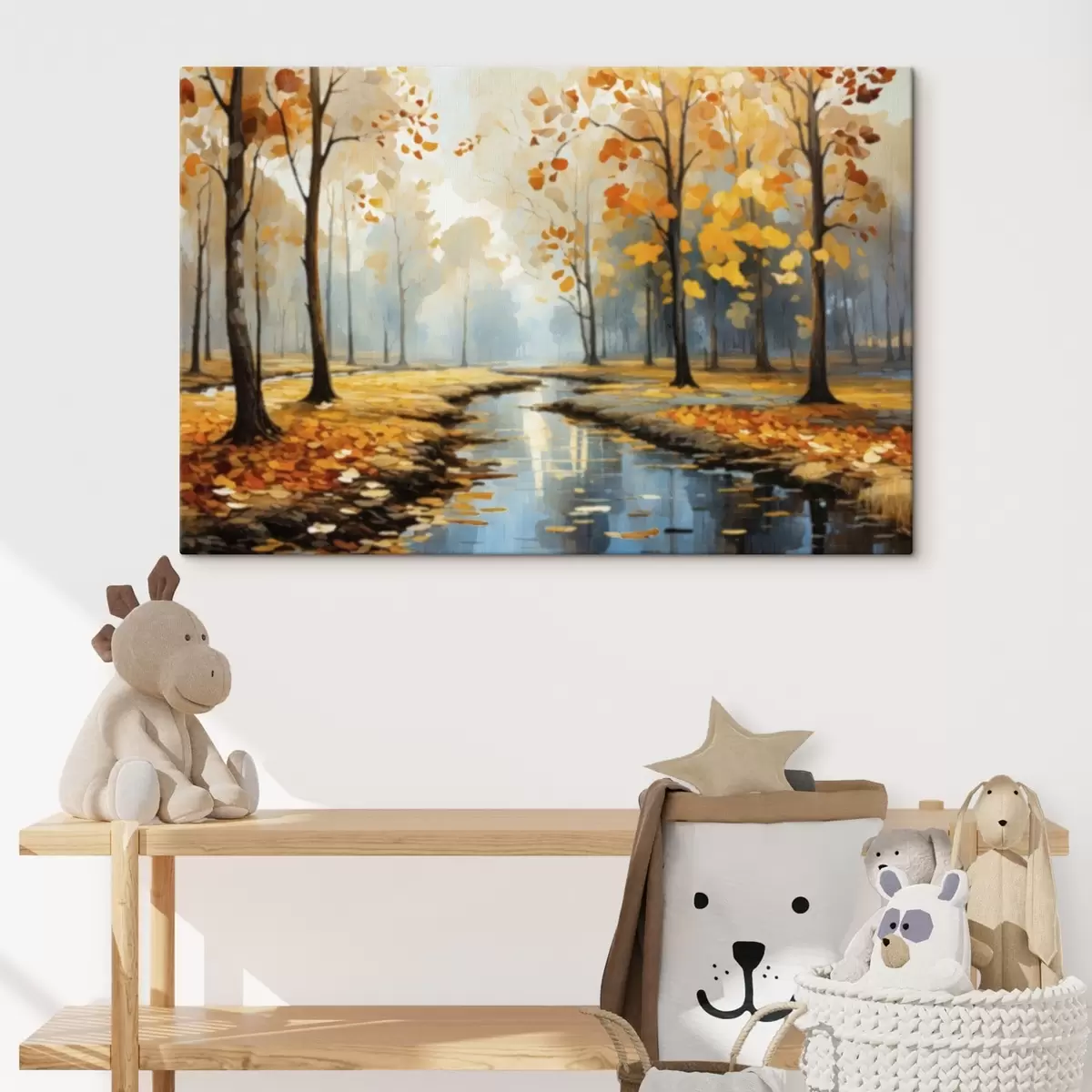 Obraz Jesienny las ze strumieniem i żółtymi liśćmi Nr s47278