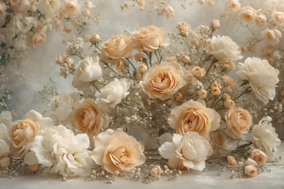 Obraz Delikatne kremowe róże w dużej kompozycji s47279