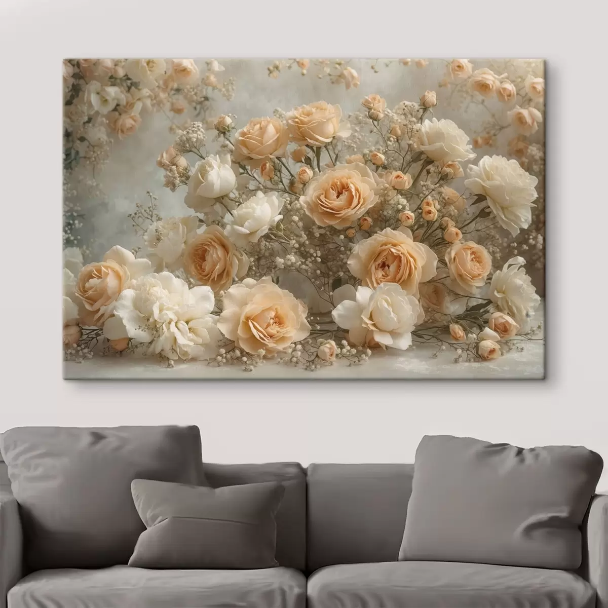 Obraz Delikatne kremowe róże w dużej kompozycji Nr s47279