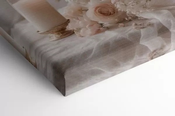 Obraz Kremowe kwiaty obok zapalonej świecy Nr s47281