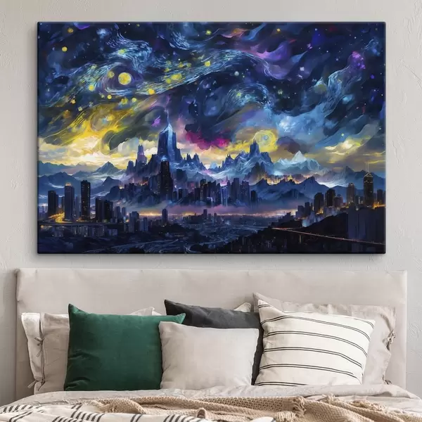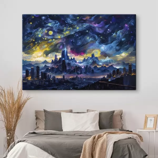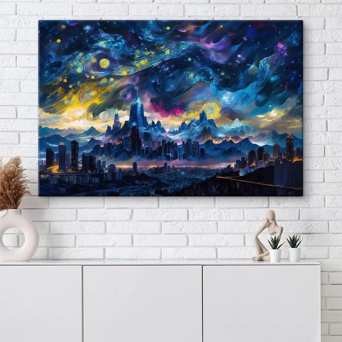 Obraz Fantastyczne miasto pod rozgwieżdżonym nocnym niebem Nr s47288