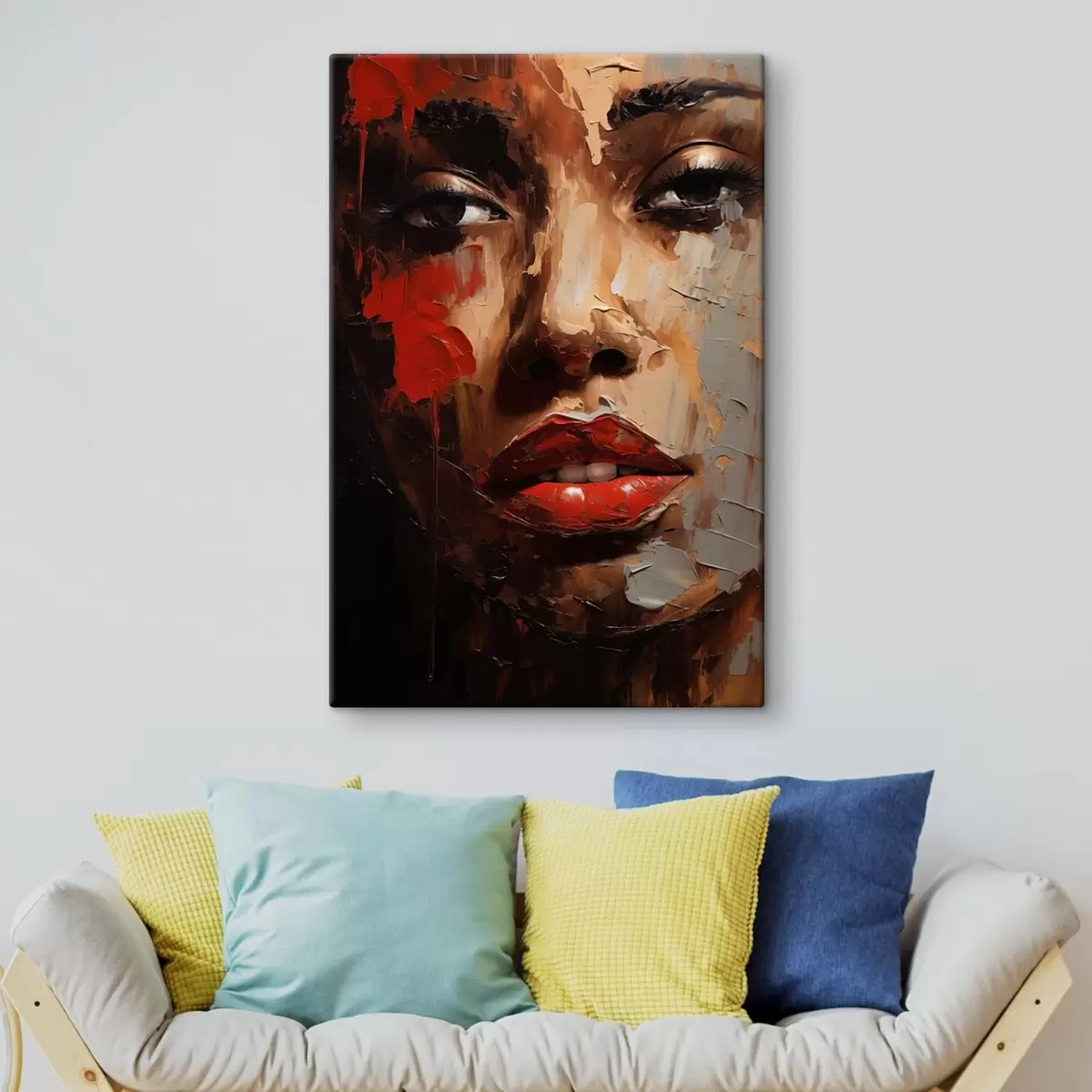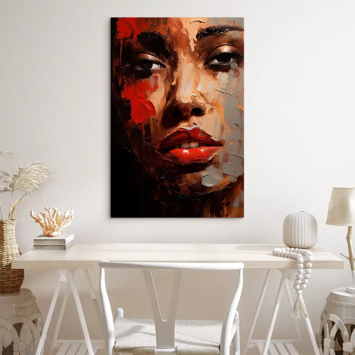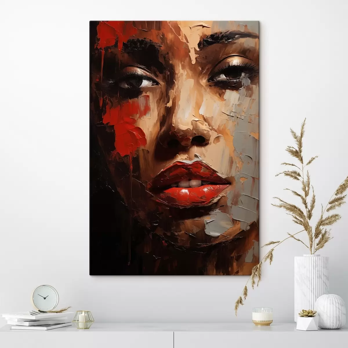 Obraz Wyrazisty portret kobiety z czerwonymi akcentami Nr s47293