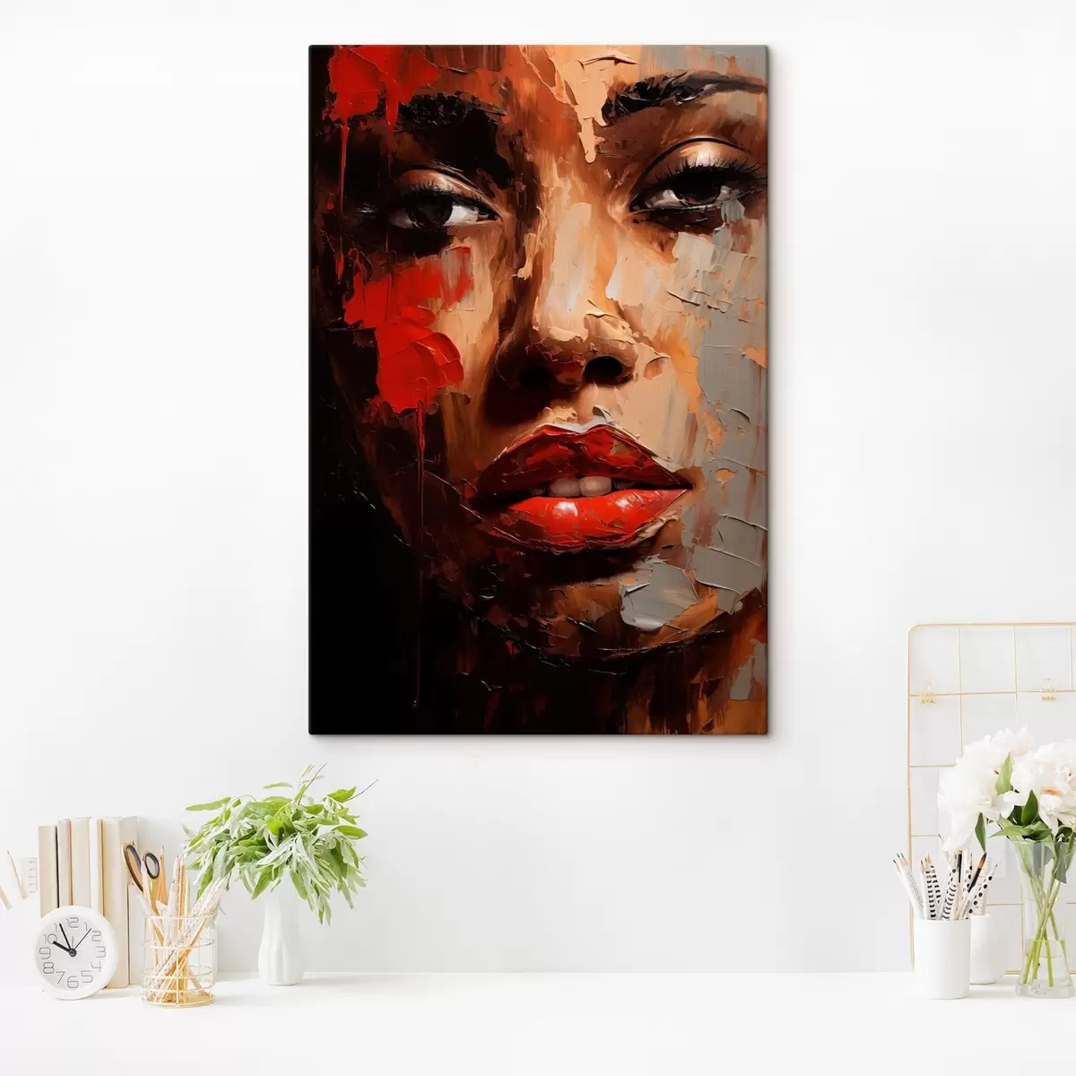 Obraz Wyrazisty portret kobiety z czerwonymi akcentami s47293
