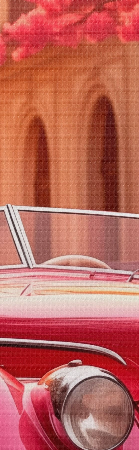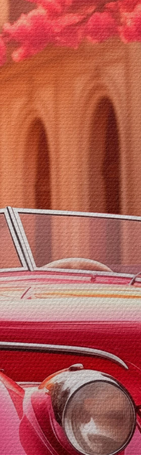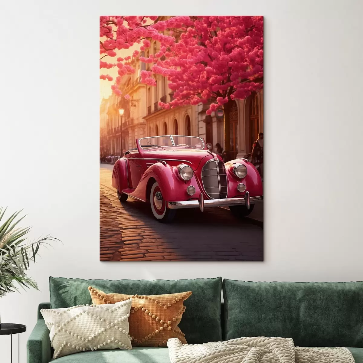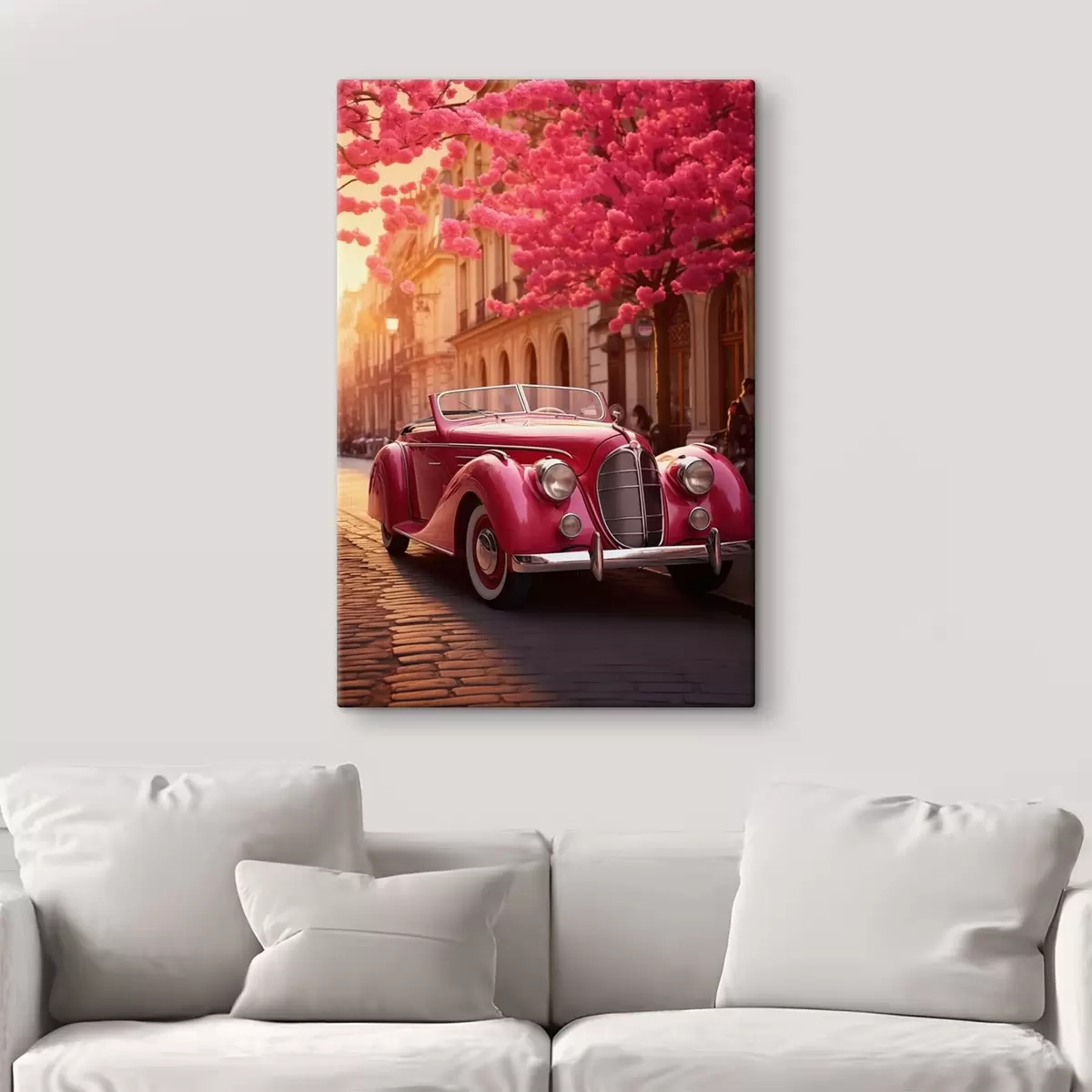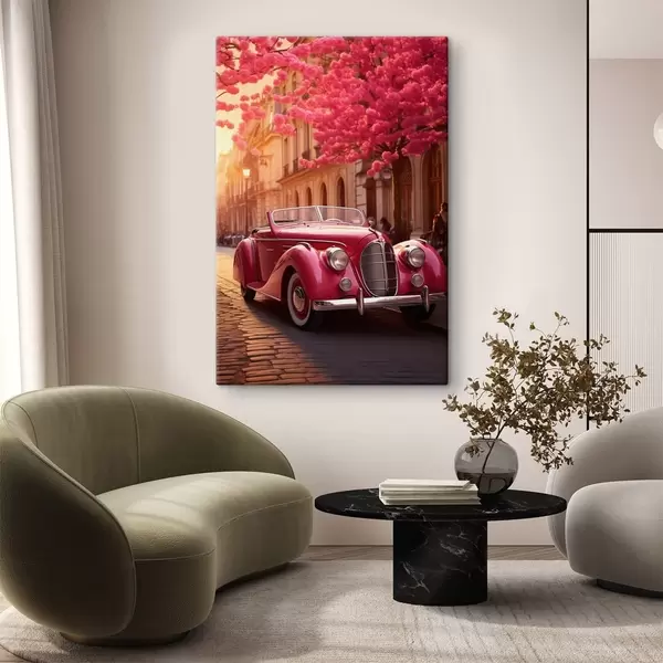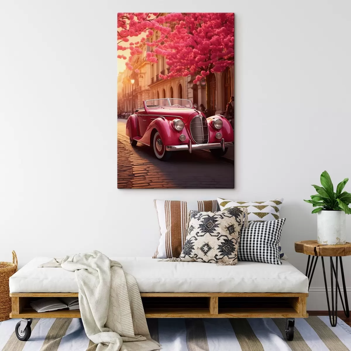 Obraz Różowy samochód pod kwitnącymi drzewami Nr s47295