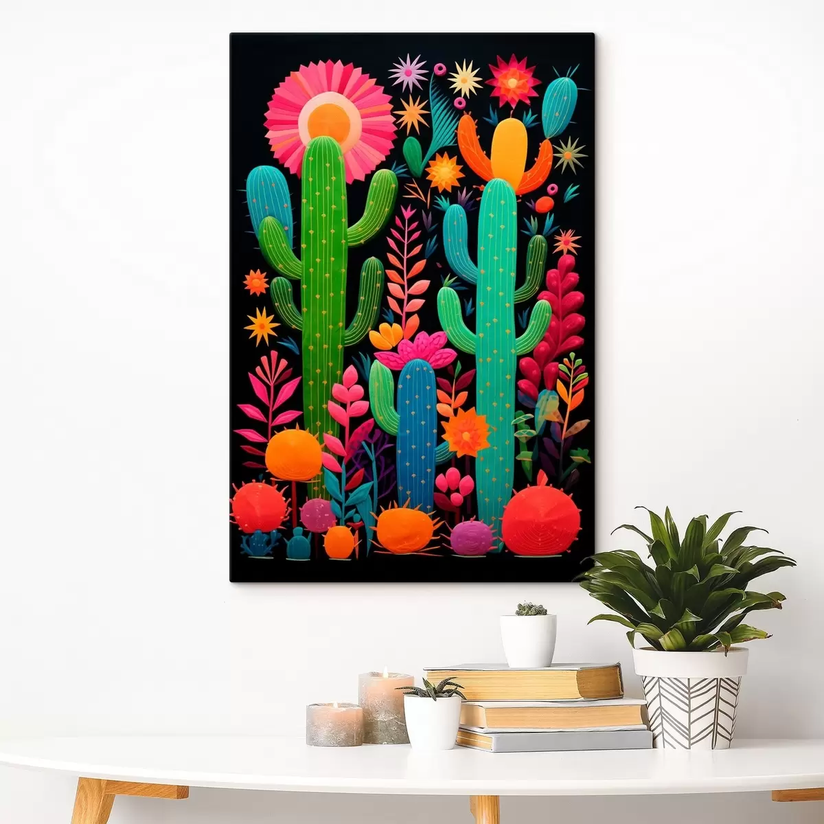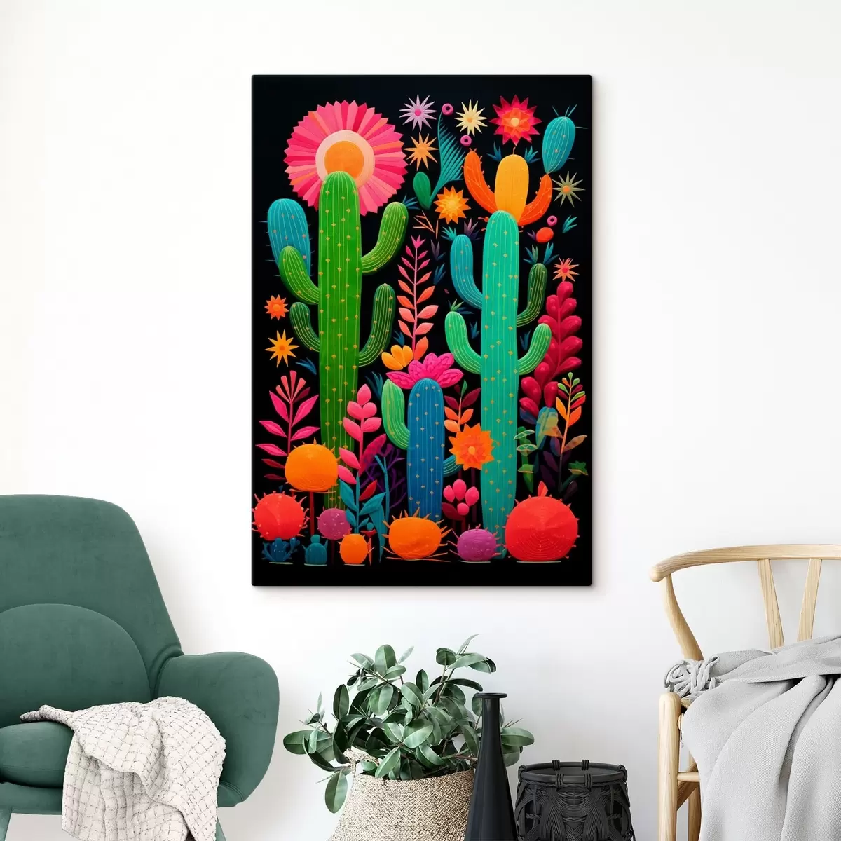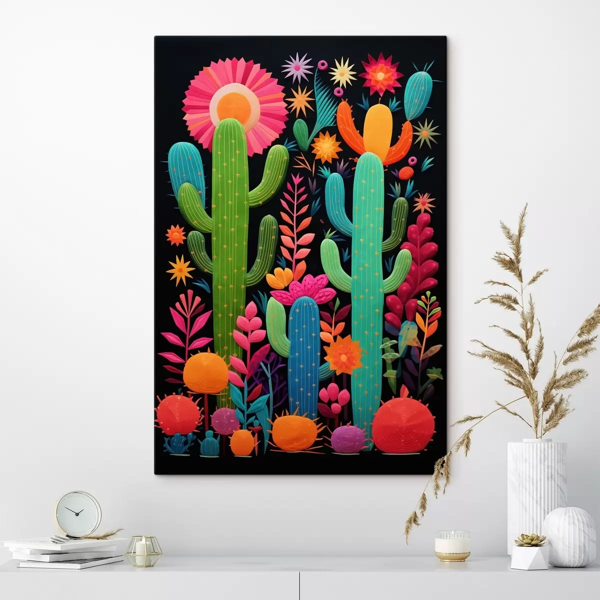 Obraz Żywe kaktusy i kwiaty na ciemnym tle Nr s47297