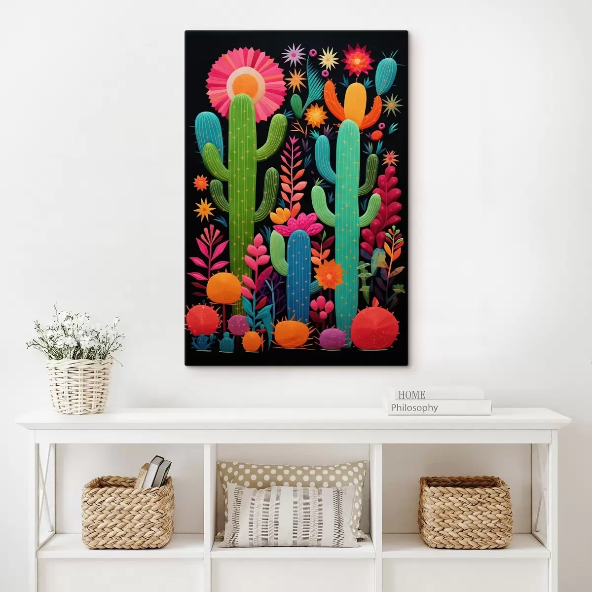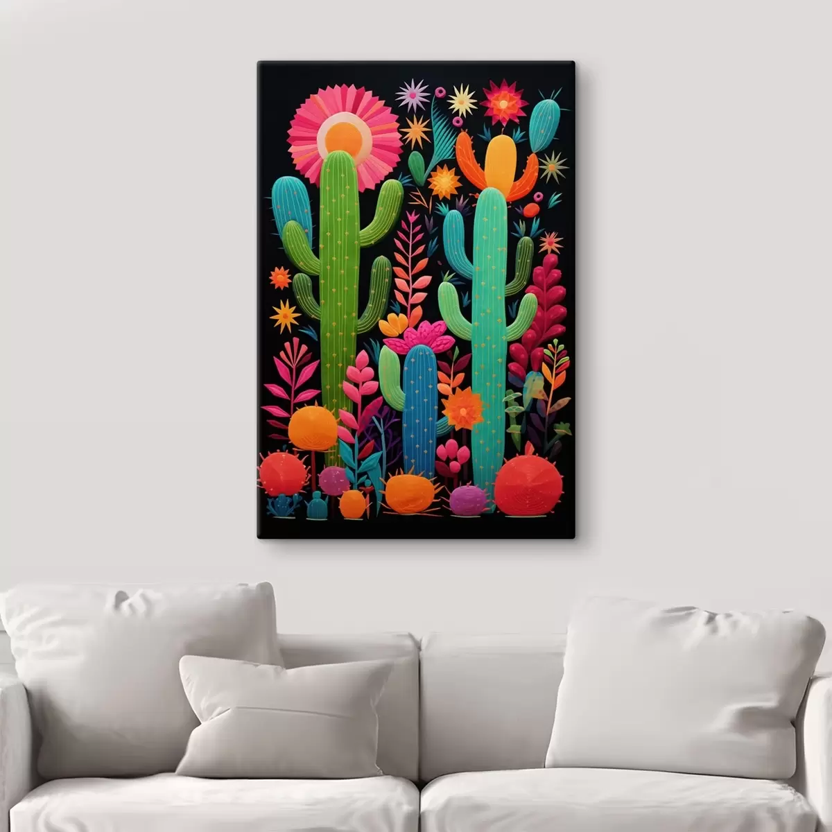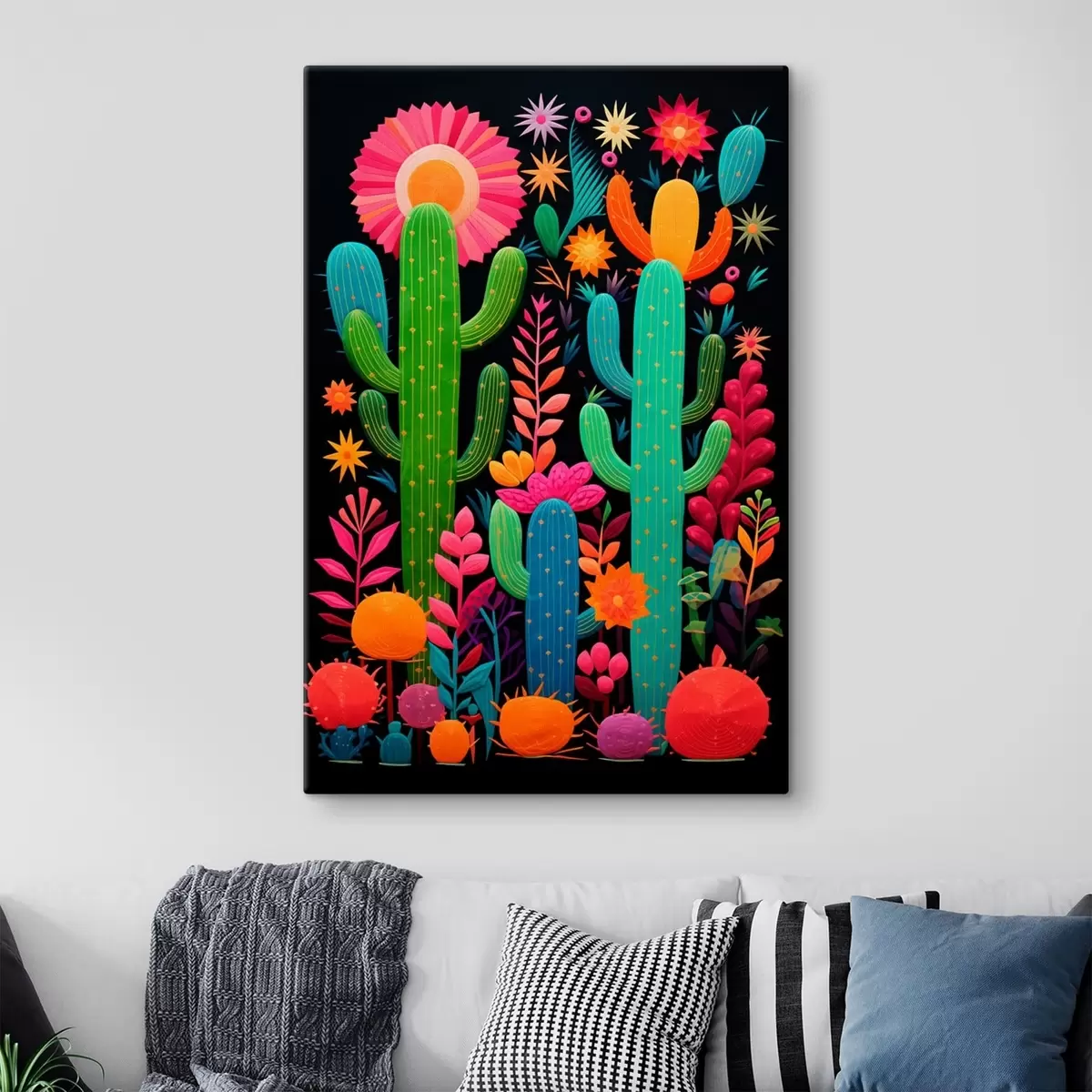 Obraz Żywe kaktusy i kwiaty na ciemnym tle Nr s47297