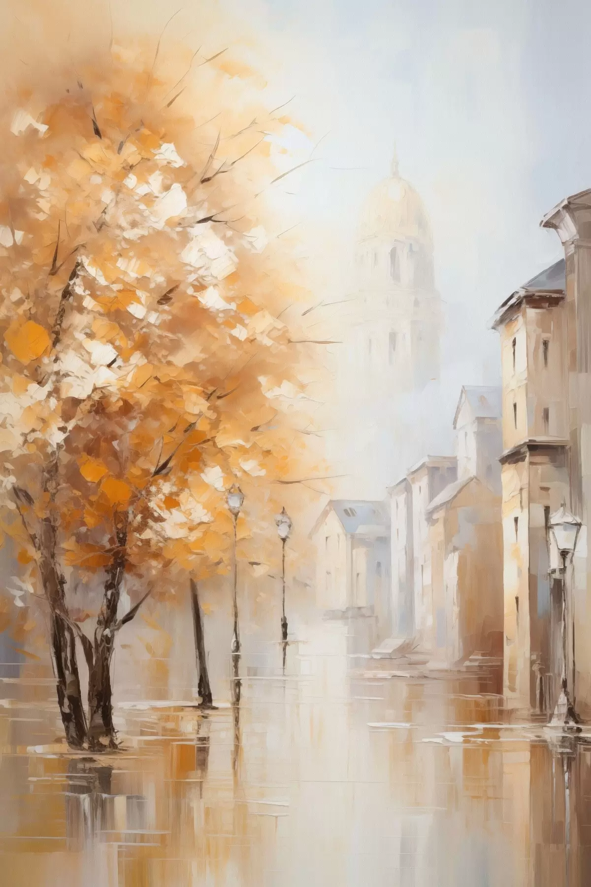 Obraz Ulica z drzewami i kopułą we mgle Nr s47304