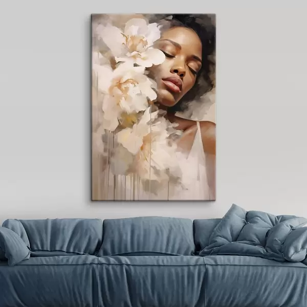 Obraz Portret kobiety obok dużych kwiatów Nr s47307