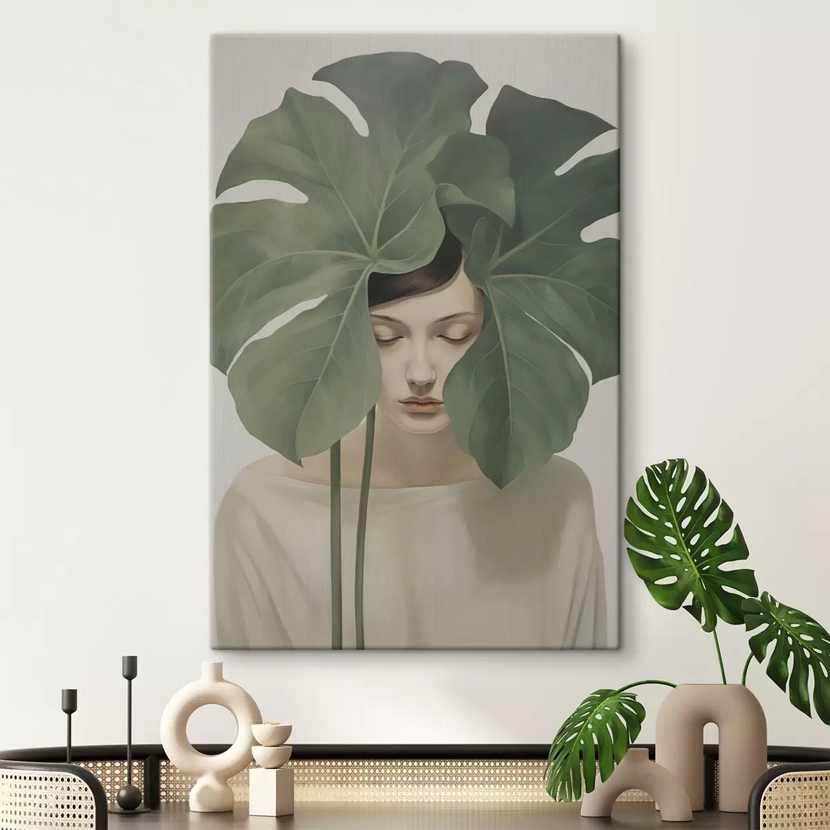 Obraz Dziewczyna z tropikalnymi liśćmi Nr s47335