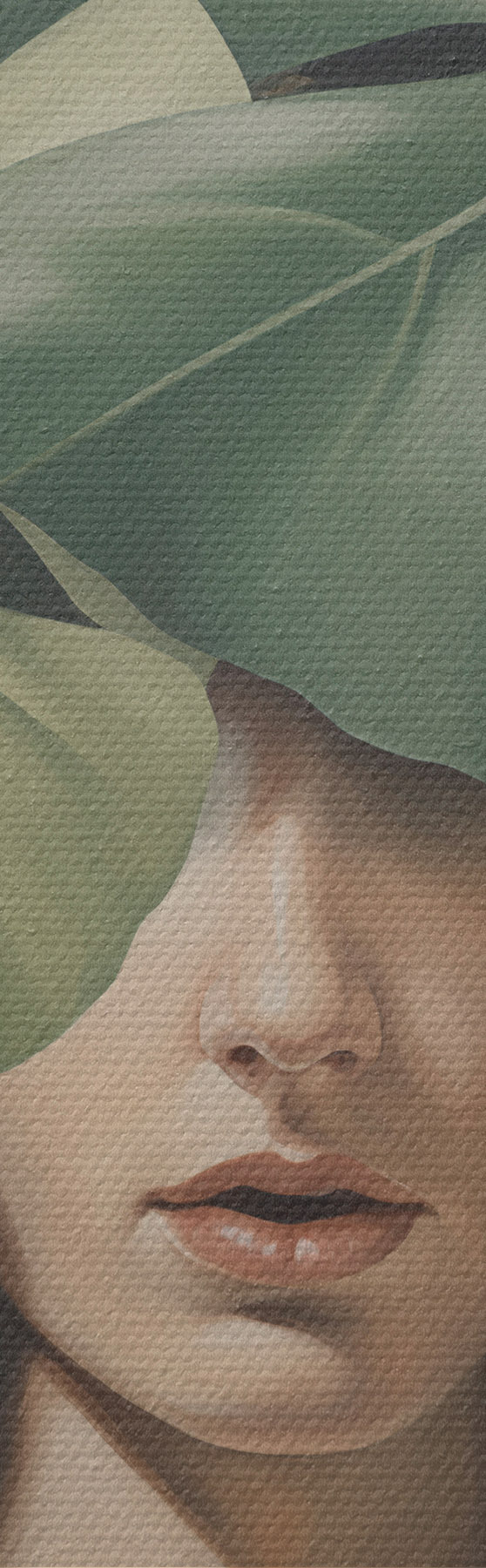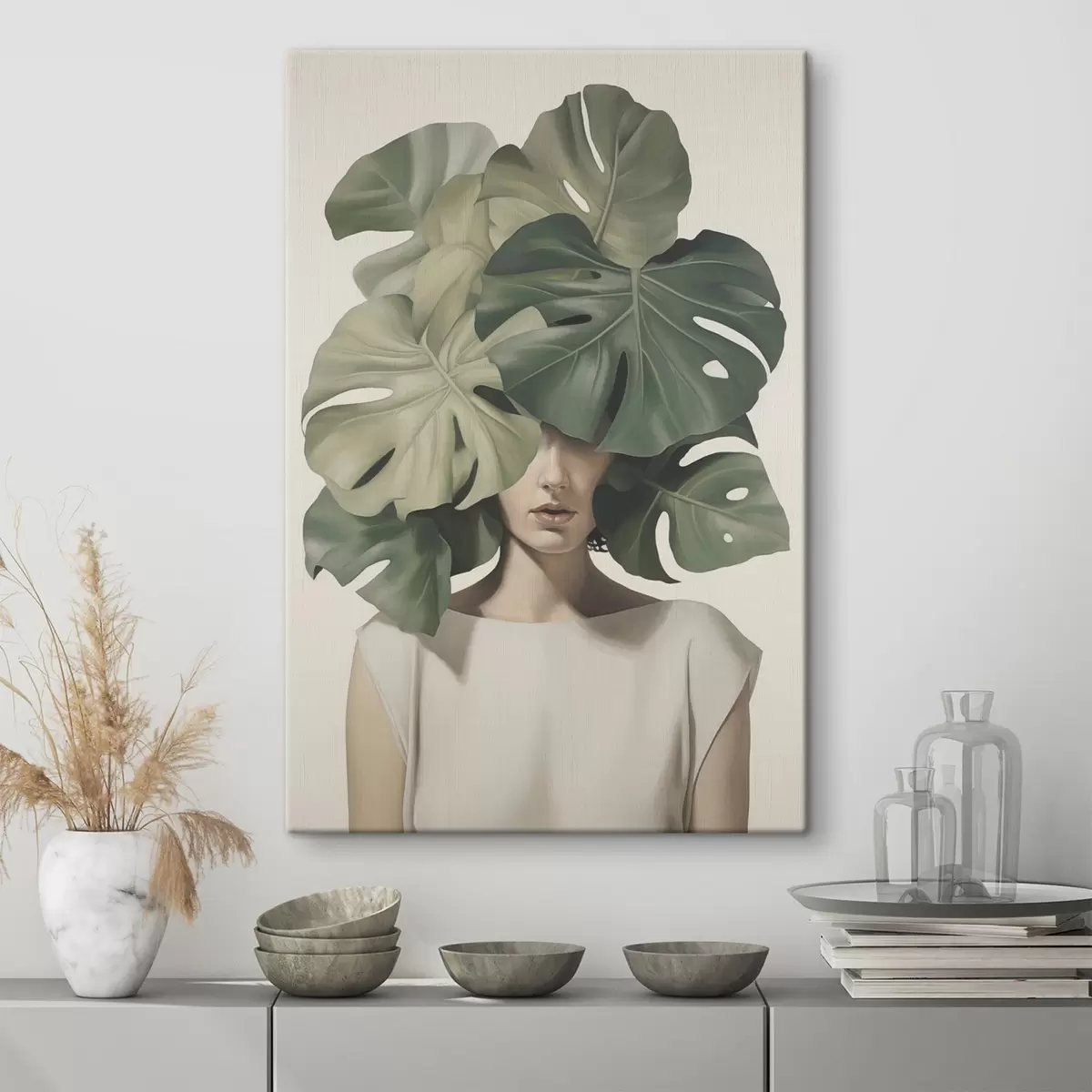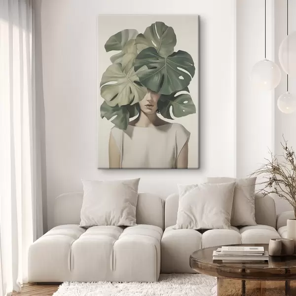 Obraz Abstrakcyjny portret dziewczyny z liśćmi monstery Nr s47336
