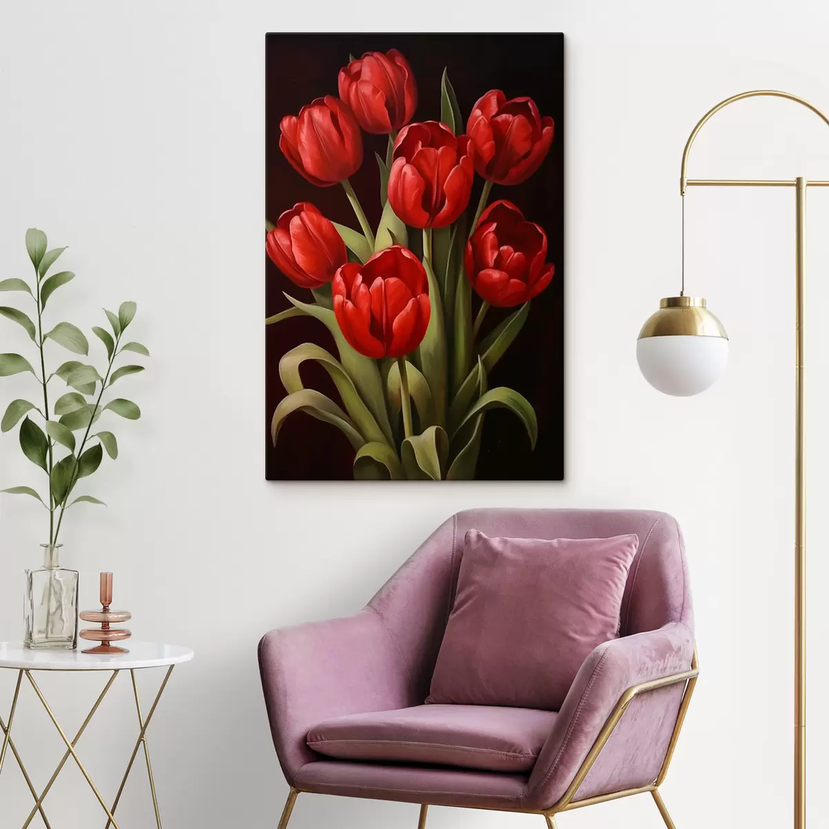 Obraz można powiesić natychmiast po jego otrzymaniu. Obraz zostanie naciągnięty na drewniany blejtram o szerokości 2 cm.