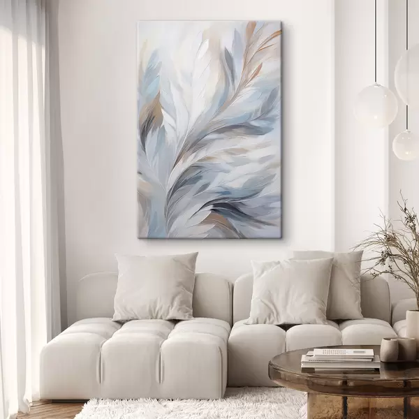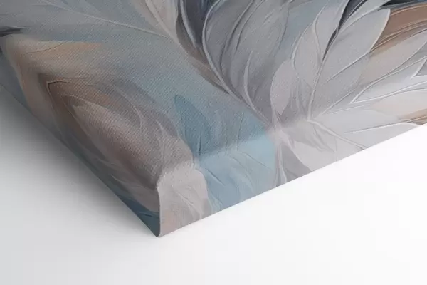 Obraz Delikatne jasnoniebieskie i brązowe pióra o miękkiej, eterycznej fakturze na białym tle. Nr s47416