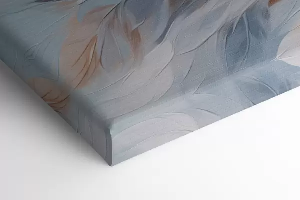 Obraz Abstrakcyjny obraz przedstawiający pióra w odcieniach bieli, błękitu i brązu, o miękkiej, płynnej fakturze i jasnym tle. Nr s47417
