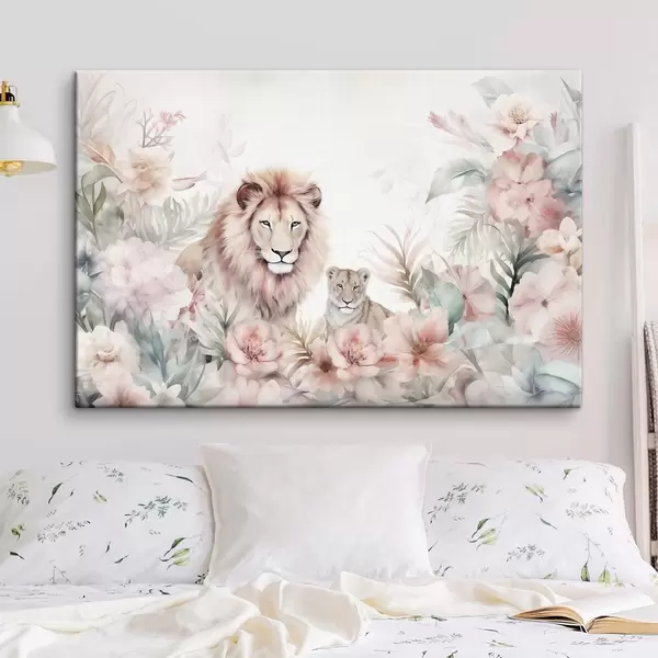 Obraz Lwy w tropikalnych zaroślach, imitacja akwareli Nr s47640