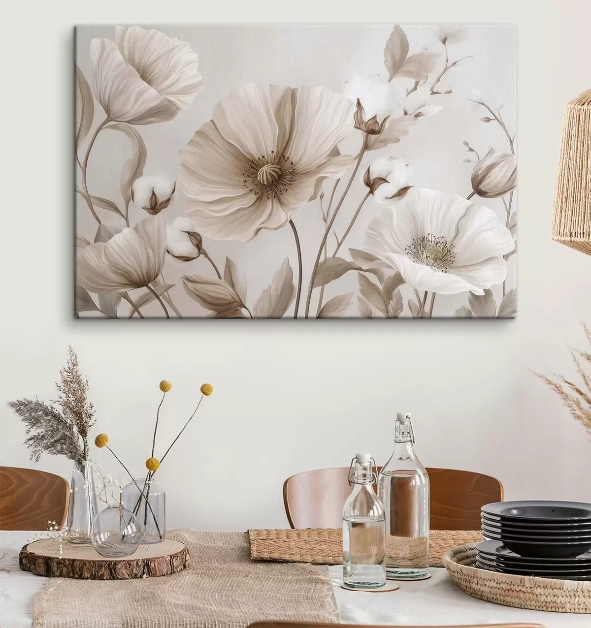 Do zamówienia dostępne są trzy rodzaje materiału: Economic Canvas - gęsty i trwały materiał do druku cyfrowego, identyczny z płótnem malarskim, wodoodporna powierzchnia, realistyczne odwzorowanie szczegółów, materiał średnioziarnisty. Premium Canvas - tekstura przypominająca płótno malarskie (przeplatane drobne nitki). Miękka, szczegółowa reprodukcja obrazu na matowej powierzchni. Eco-Premium - wysokiej jakości tkanina w 100% bawełniana. Dzięki naturalnym włóknom bawełnianym materiał jest trwały i odporny na zużycie. Doskonałe odwzorowanie kolorów i szczegółów.