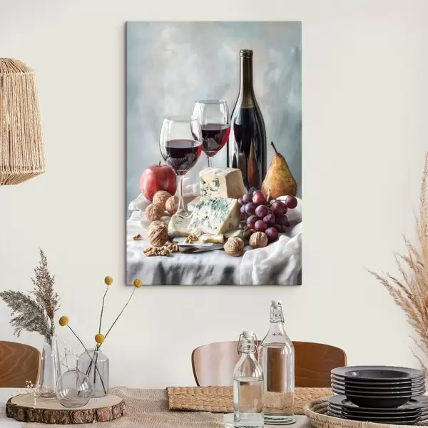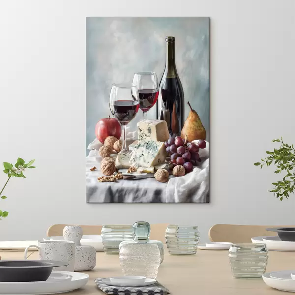 Obraz martwa natura z winem, serem i orzechami Nr s47686