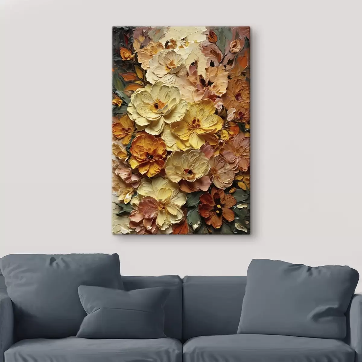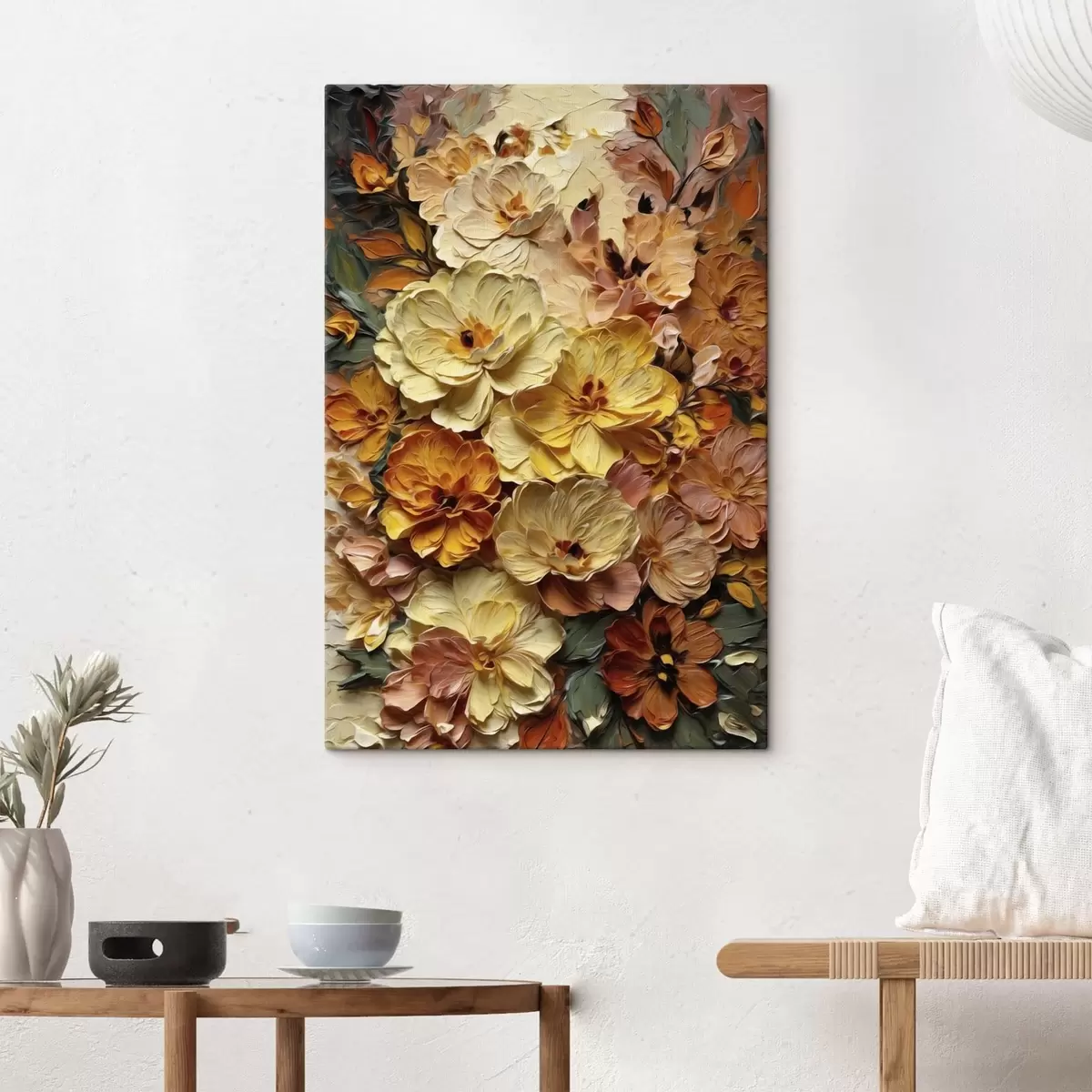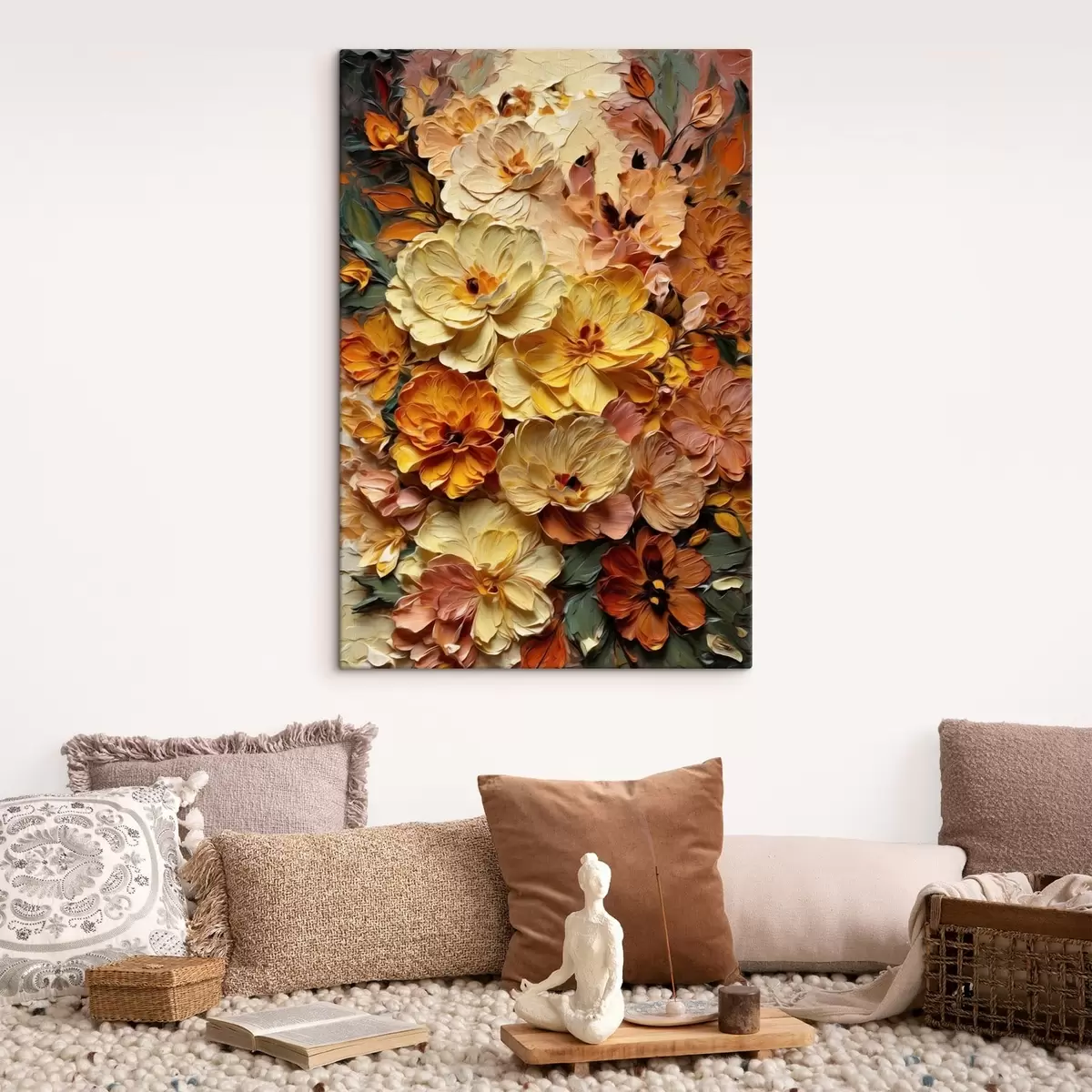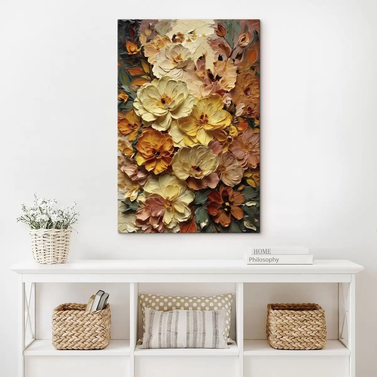 Obraz Bujna kompozycja z żywych kwiatów w ciepłych odcieniach Nr s47760