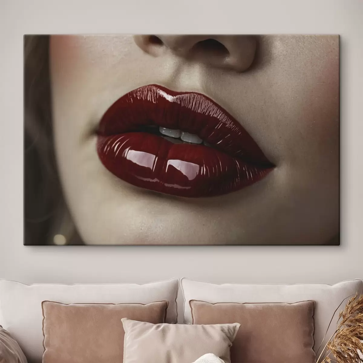 Obraz Bardzo zbliżony widok błyszczących czerwonych ust Nr s47772