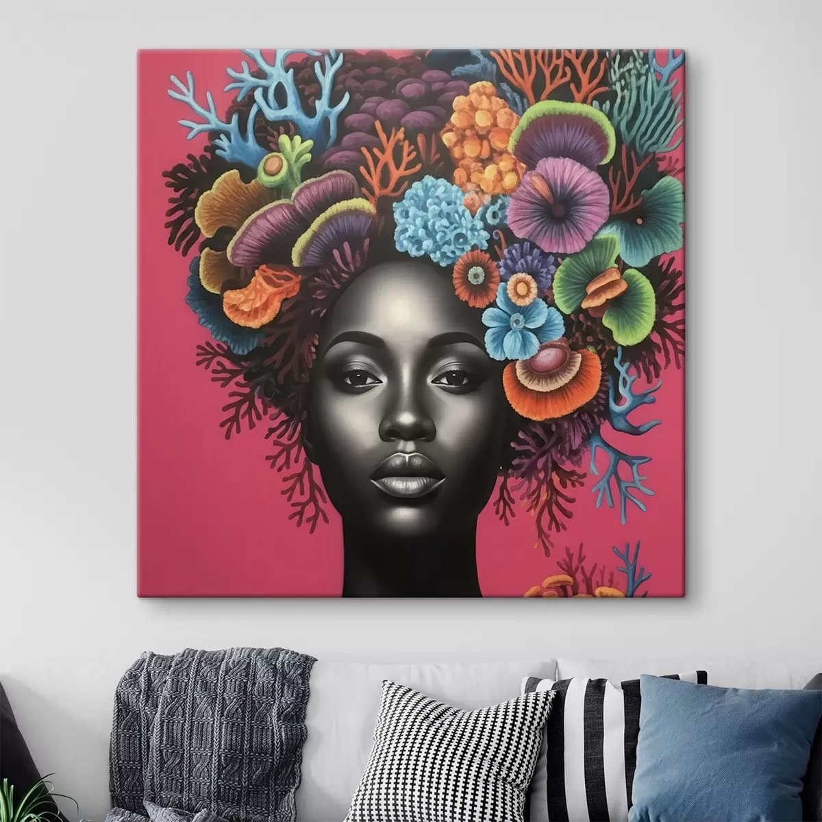 Obraz Psychodeliczny portret kobiety z grzybami Nr s47786