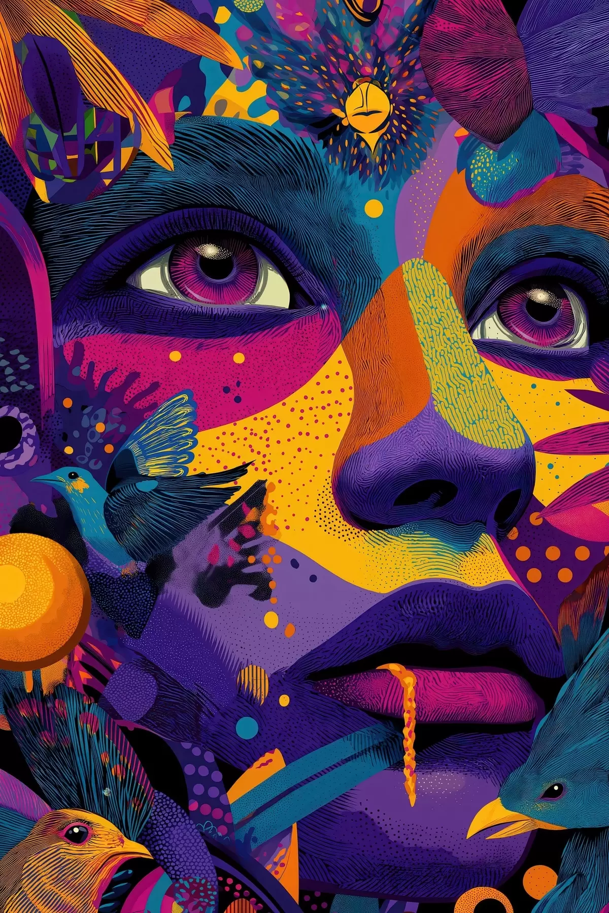 Obraz Psychodeliczny portret z ptakami Nr s47790