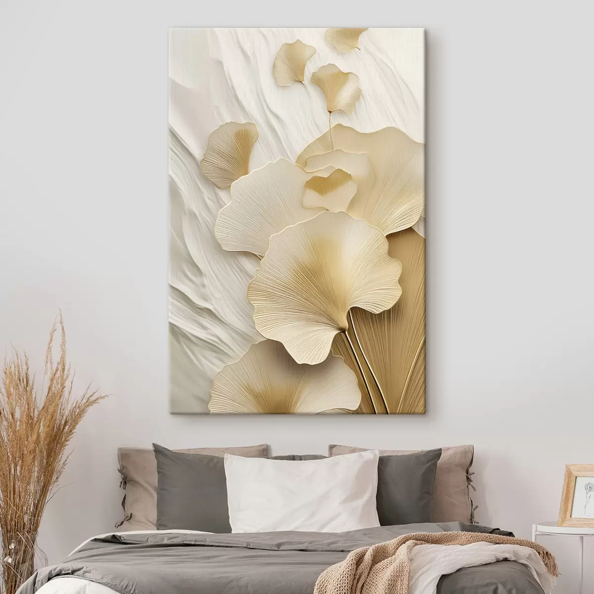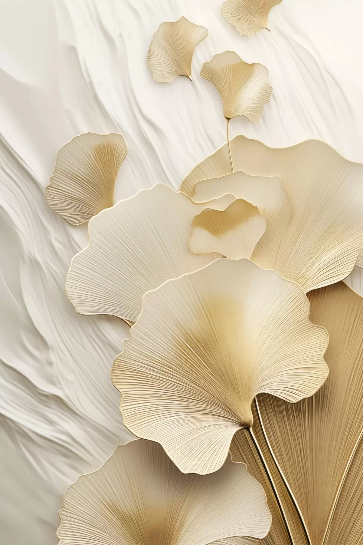 Obraz Abstrakcyjne liście miłorzębu na teksturowanym, jasnym tle, elegancka i abstrakcyjna kompozycja s47868