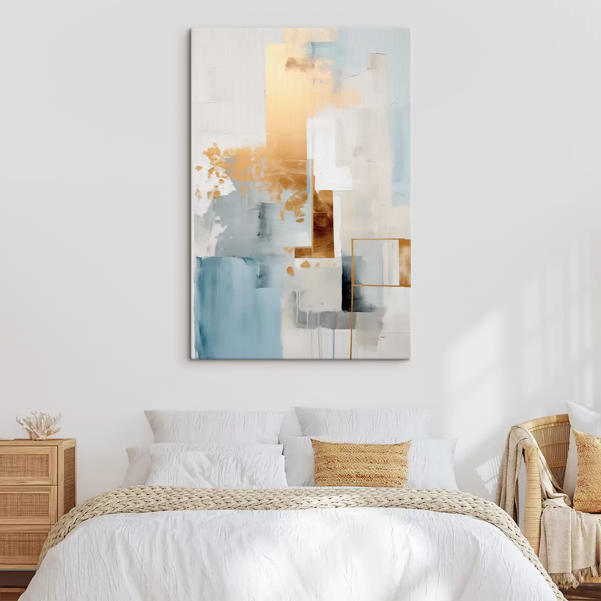 Obraz Abstrakcyjne geometryczne kształty w kolorach żółtym, niebieskim i białym, teksturowana i minimalistyczna kompozycja Nr s47881