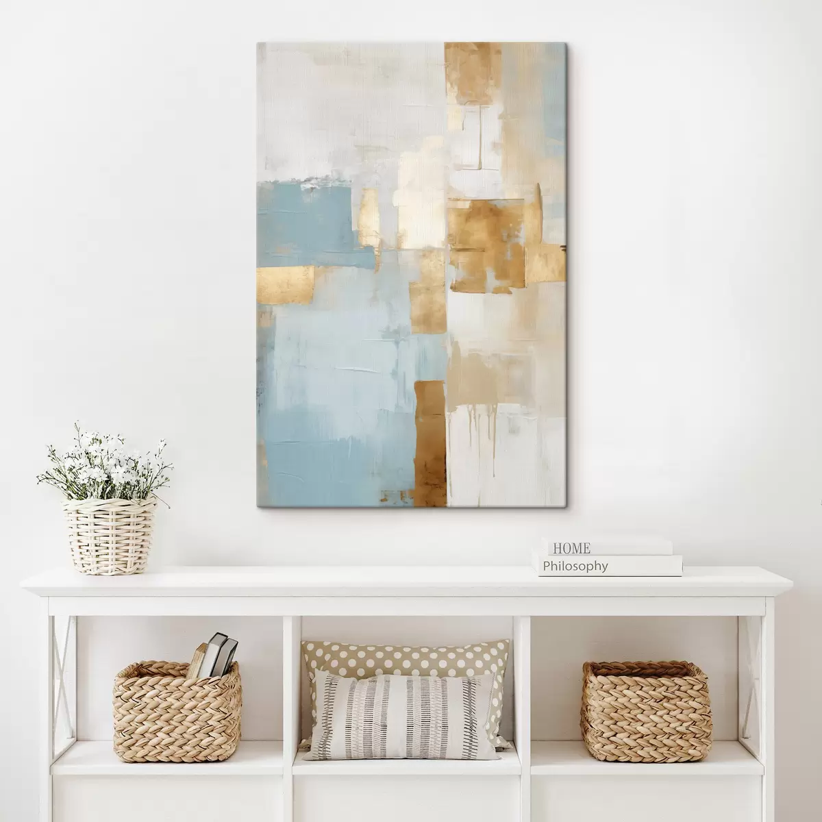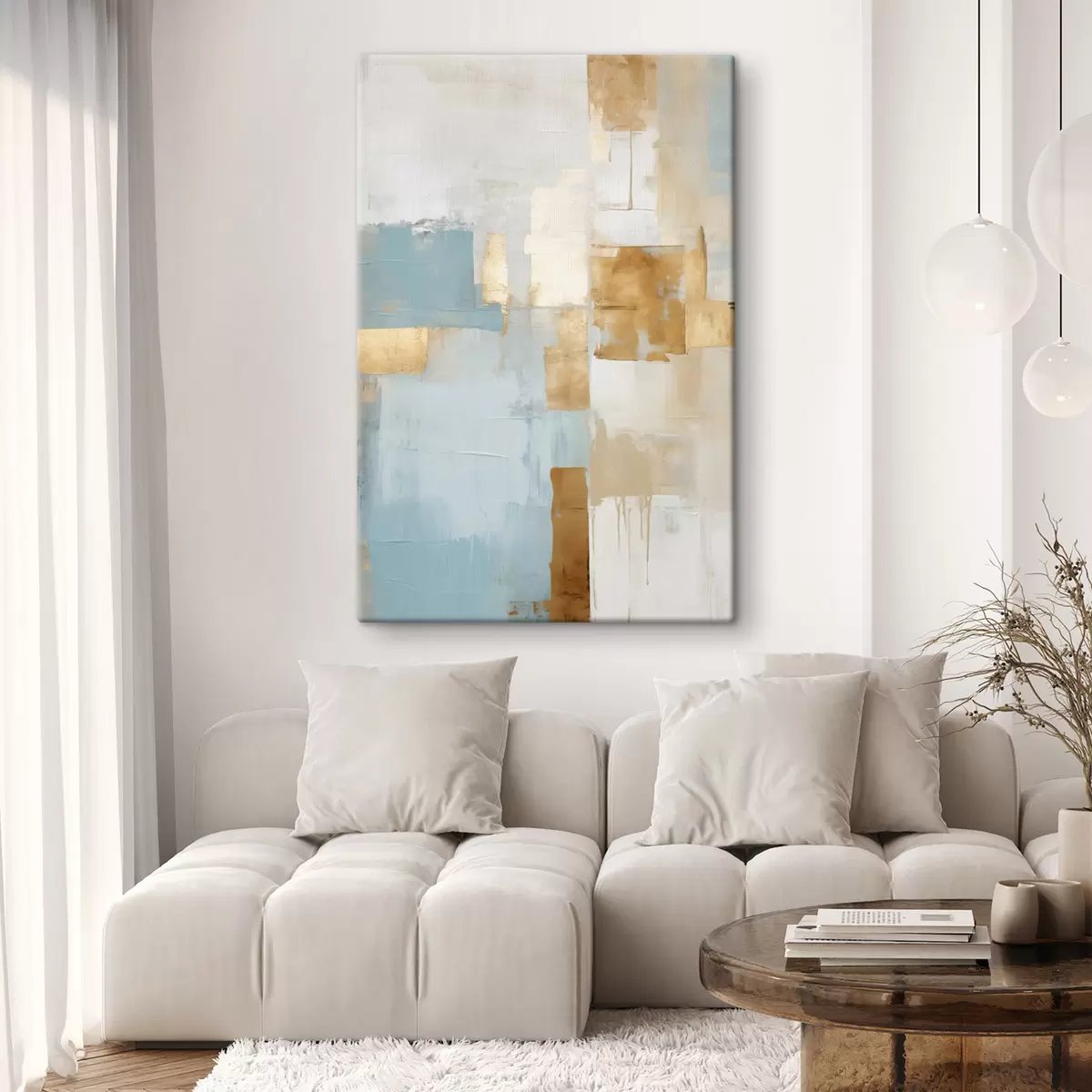 Obraz Abstrakcyjne geometryczne kształty w kolorach żółtym, niebieskim i białym, teksturowana i minimalistyczna kompozycja Nr s47882
