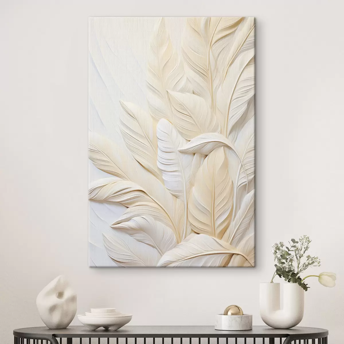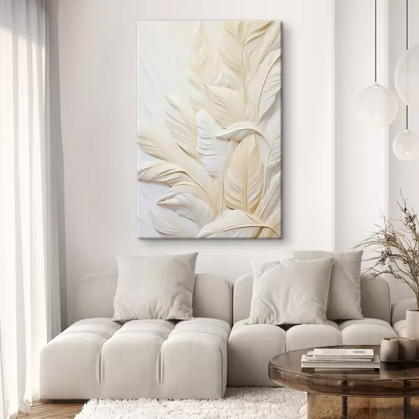 Obraz Kremowe pióra nakładające się na siebie, na delikatnym, jasnym tle Nr s47883