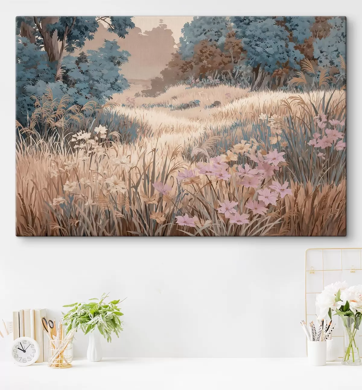 Sprzedajemy obrazy na blejtramie - jest to drewniana rama, na którą naciągnięte jest płótno. Tego obrazu nie trzeba oprawiać; można go powiesić bezpośrednio na ścianie.