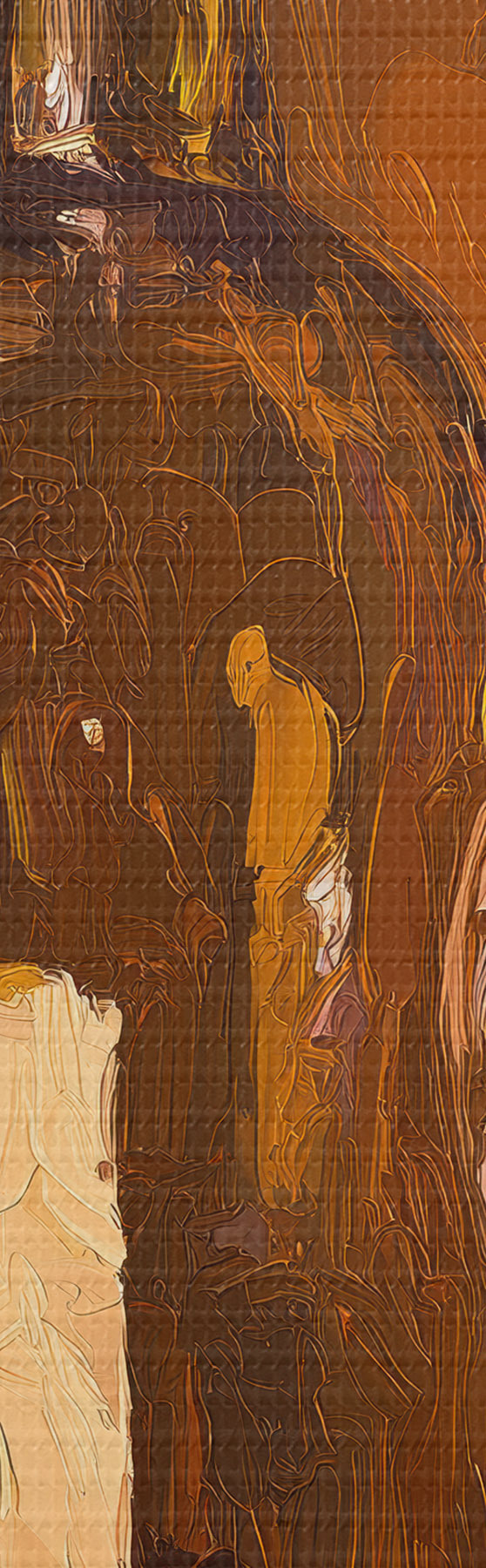Obraz można delikatnie przetrzeć suchą, miękką szmatką lub gąbką; nie zaleca się używania mokrych produktów. Użycie wilgotnej gąbki jest dozwolone tylko wtedy, gdy obraz został polakierowany.