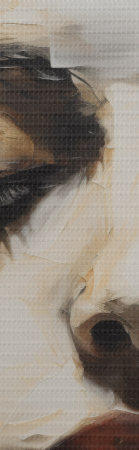 Drobny splot nici na tym płótnie przypomina powierzchnię profesjonalnych płócien artystycznych.