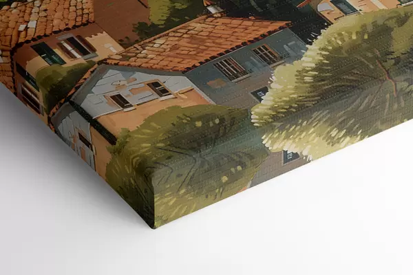 Obraz śródziemnomorska wioska na wzgórzu, domy w ciepłych kolorach z dachami z terakoty Nr s47951