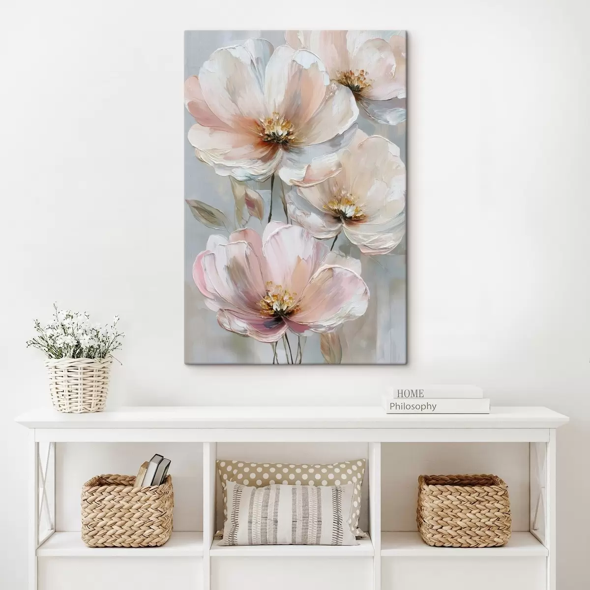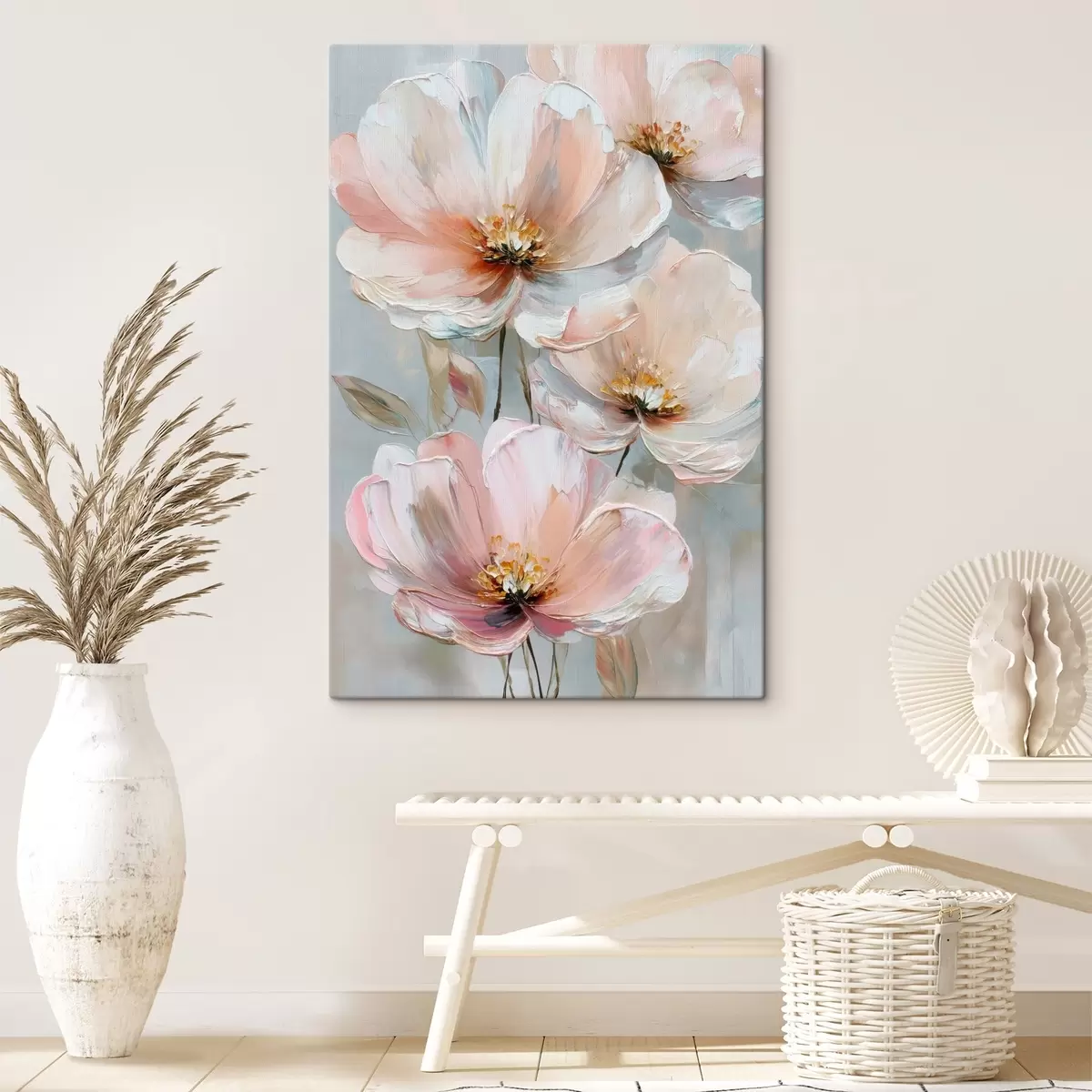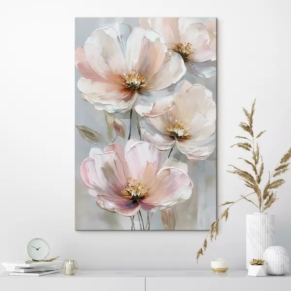 Obraz Biało-różowe kwiaty z wyrazistymi pociągnięciami pędzla w stylu malarstwa olejnego s47962